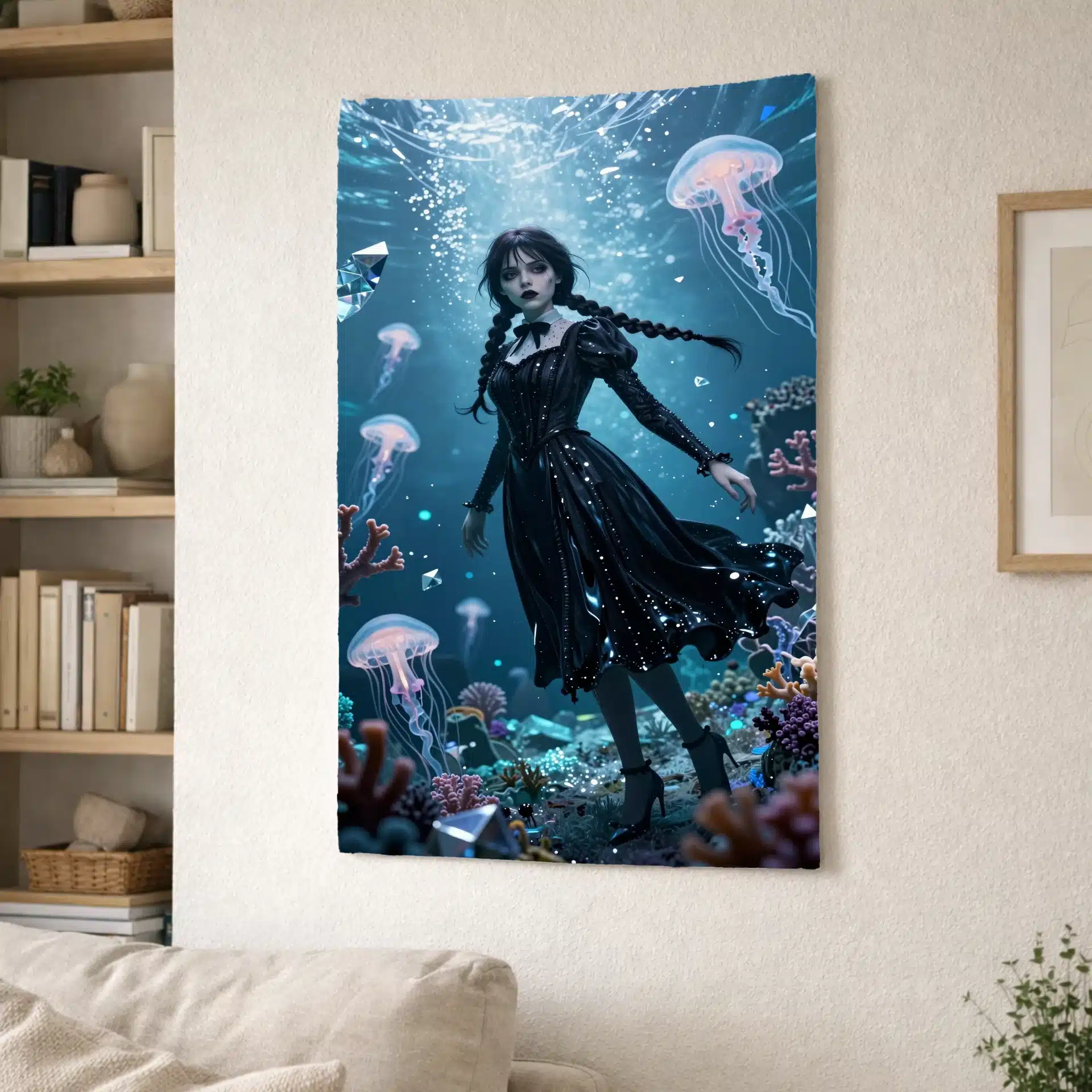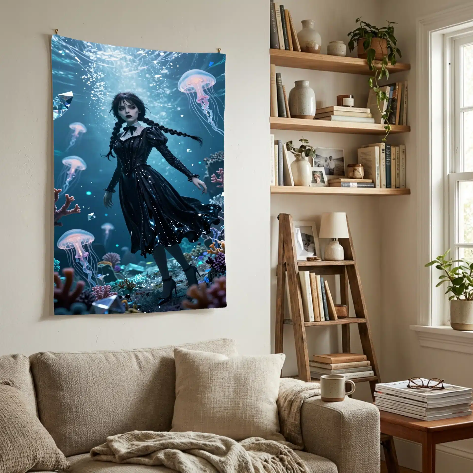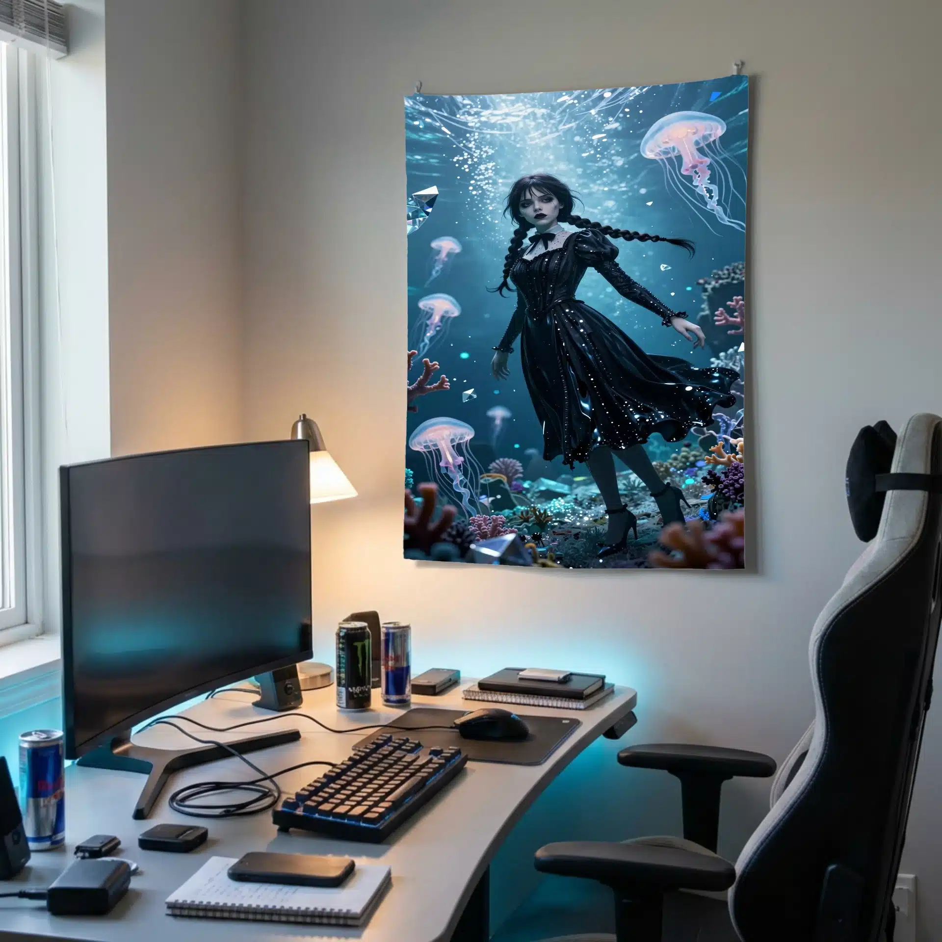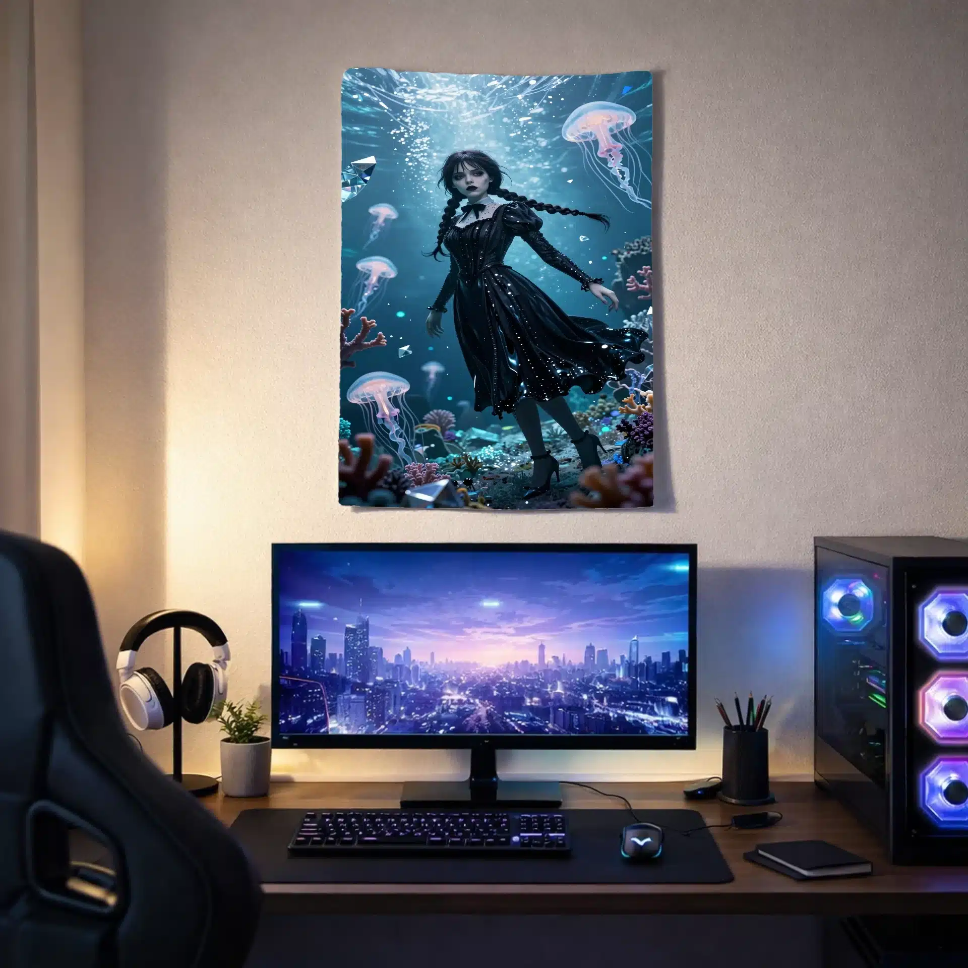 این پرچم با الهام از شخصیت ونزدی آدامز طراحی شده است که در یک صحنه زیرآبی قطبی به تصویر کشیده شده است. ترکیب سبک انیمه و جزئیات سینمایی 8K، تصویری خیرهکننده از ونزدی را در میان مرجانهای درخشان و عروسهای دریایی بیولومینسنت ارائه میدهد.