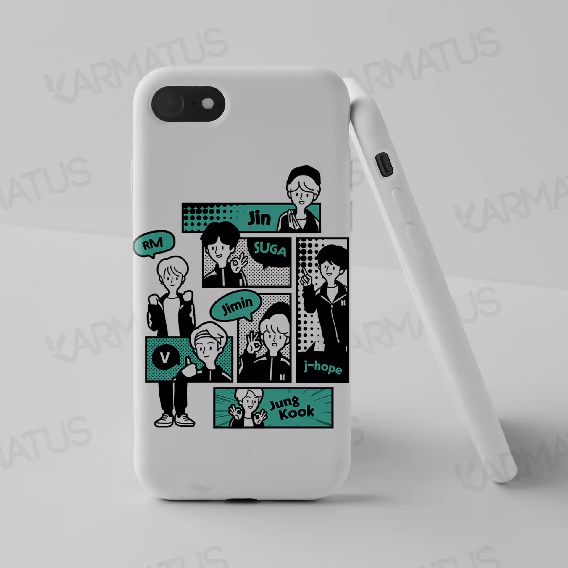 محافظ موبایل طرح گروه موسیقی بی تی اس بنگتن، اعضای جین، شوگا، جی-هوپ، آراِم، جیمین، وی، جونگ‌کوک