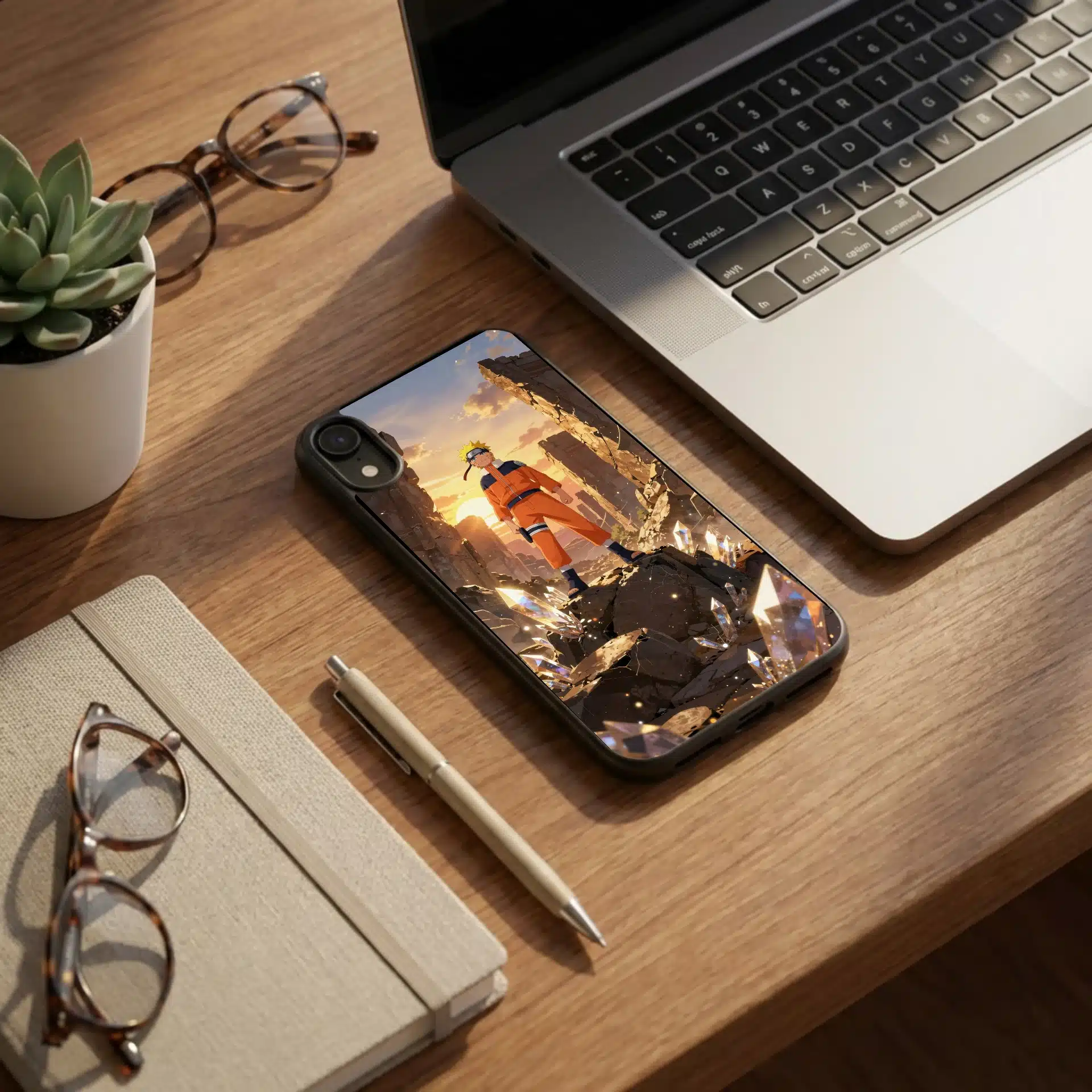 قاب موبایل ناروتو با طراحی خیرهکننده، صحنهای حماسی از ناروتو را به تصویر میکشد که بر فراز ویرانههای سنگی باستانی ایستاده است. نور طلایی غروب، محیط را احاطه کرده و هیجان و انرژی منحصر به فرد این شخصیت محبوب را به نمایش میگذارد.