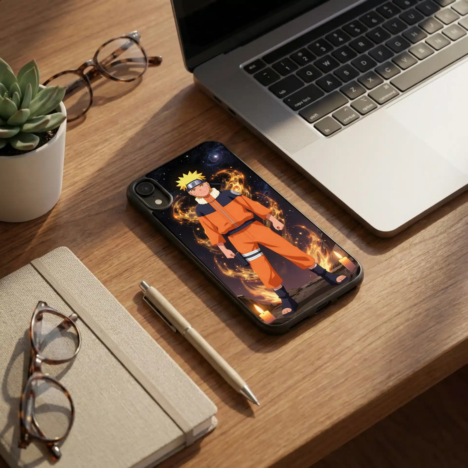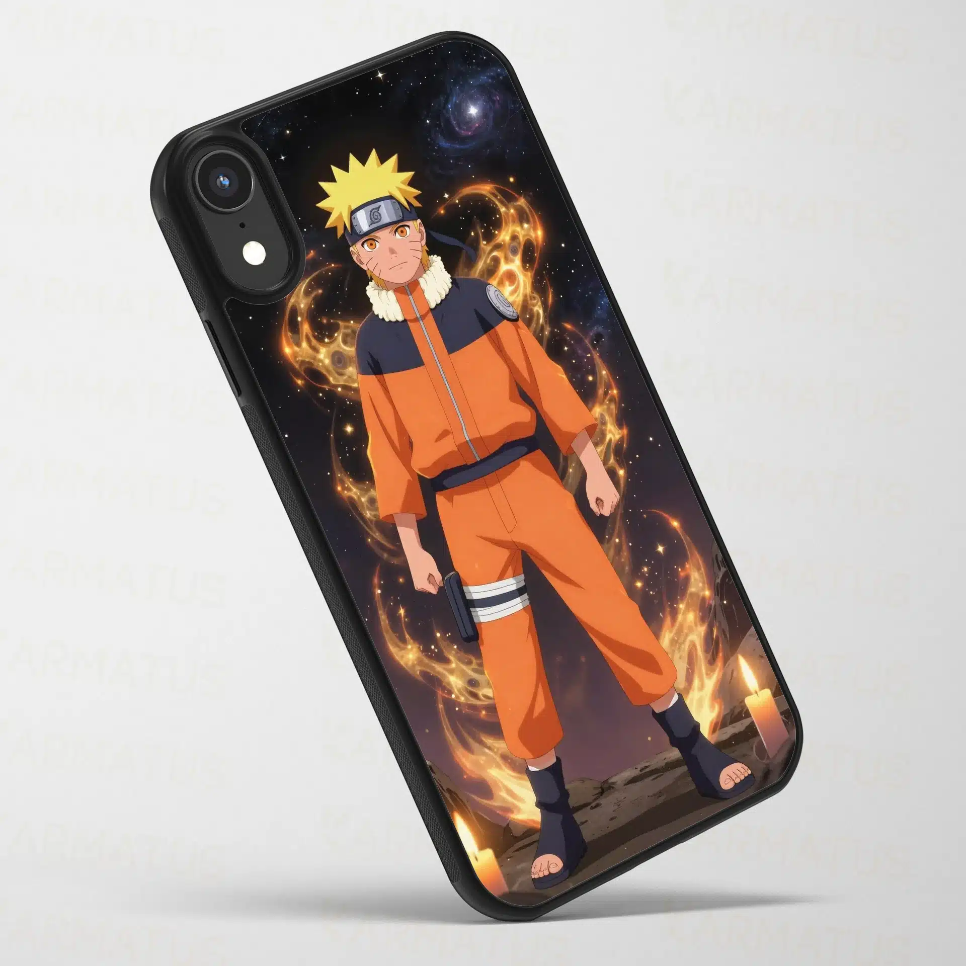 قاب موبایل ناروتو با طراحی خیرهکنندهای از ناروتو اوزوماکی در فضای بیکران ارائه شده است. این طرح با ترکیب رنگهای نئون و نورهای گرم شمعها، حال و هوایی رویایی و پرانرژی از شخصیت محبوب ناروتو را به نمایش میگذارد.