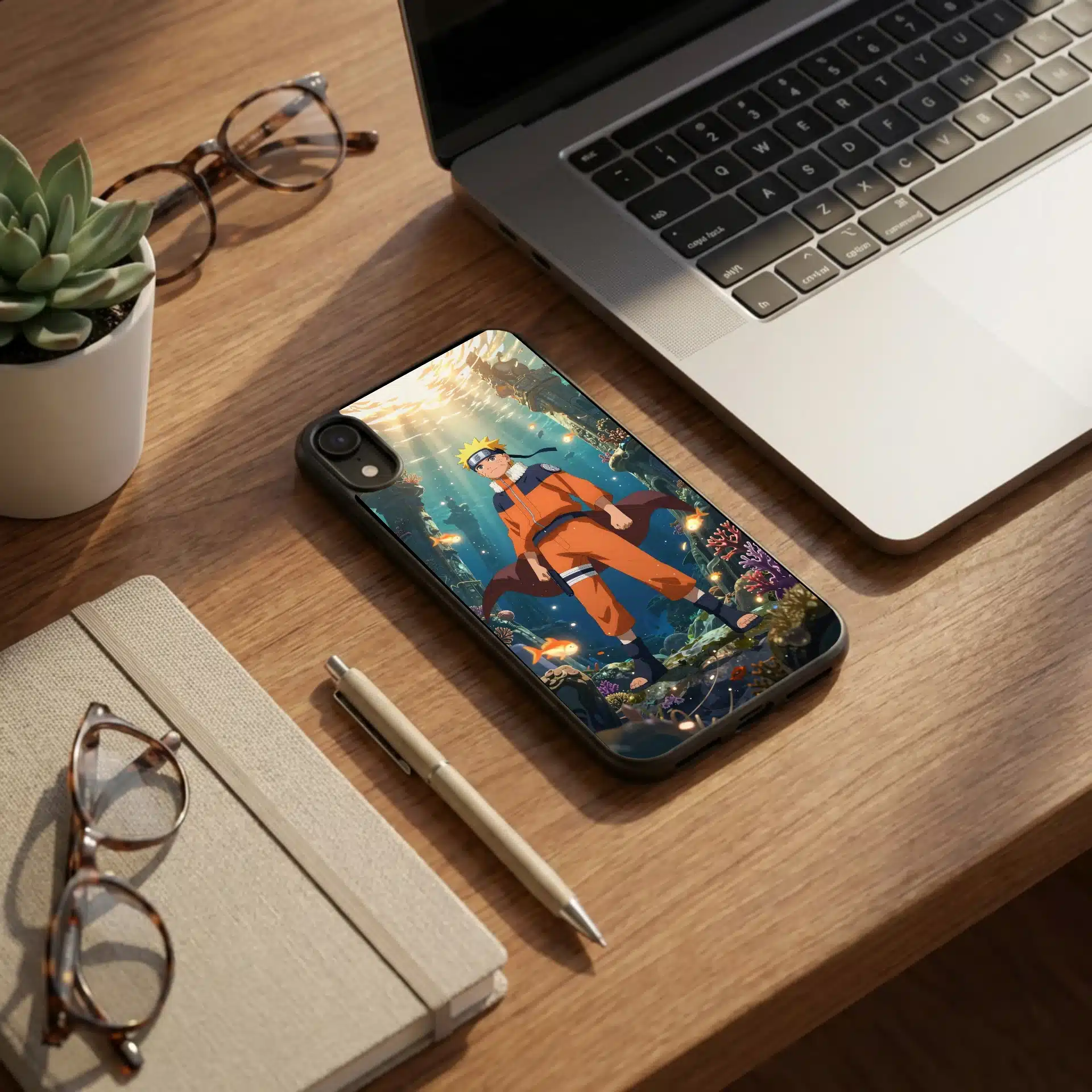 قاب موبایل ناروتو با طراحی منحصر به فرد، صحنهای حماسی از ناروتو را در اعماق اقیانوس به تصویر میکشد. نور طلایی غروب خورشید که از سطح آب میتابد، فضایی رویایی و پر از انرژی ایجاد کرده است.