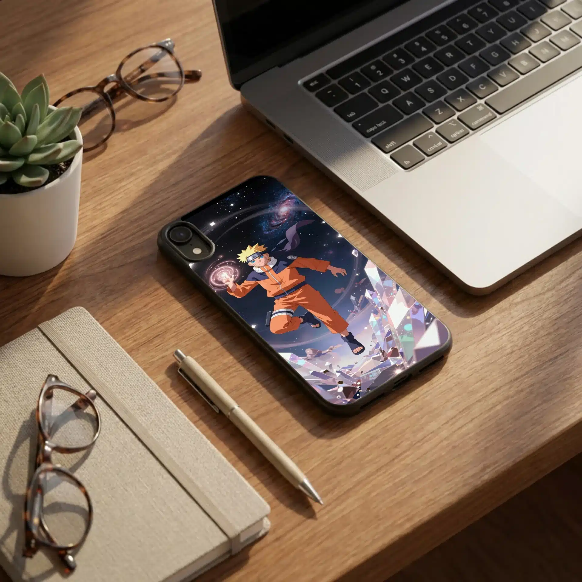 قاب موبایل ناروتو با طراحی منحصر به فرد و رویایی، تصویری خیرهکننده از ناروتو اوزوماکی را در فضای بیکران به نمایش میگذارد. این اثر با ترکیب رنگهای پاستلی و نورپردازی سینمایی، حس قدرت و آرامش را همزمان منتقل میکند.