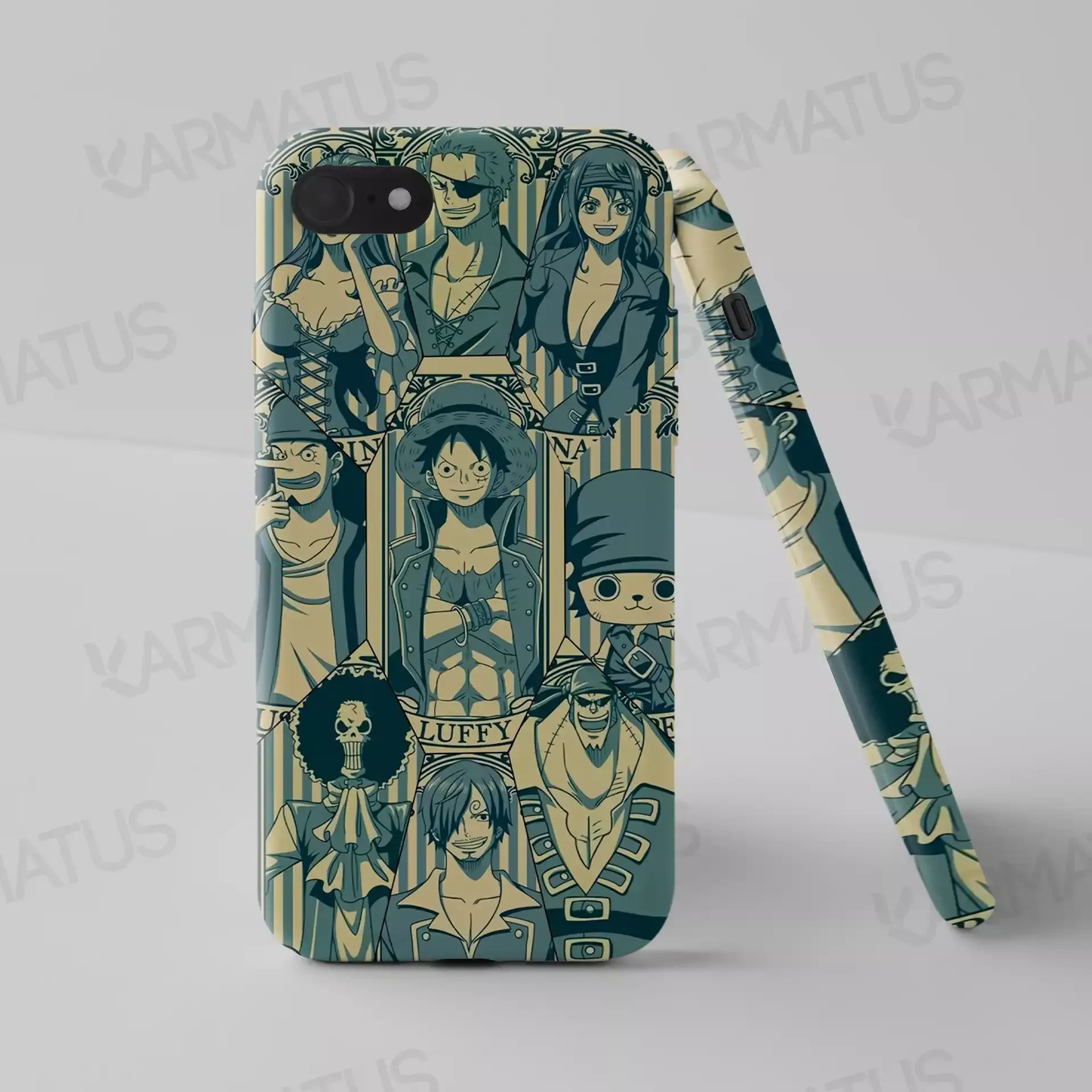 قاب موبایل کارماتوس با طرح‌های "وان پیس" انتخابی ایده‌آل برای عاشقان این انیمه است. با استفاده از این قاب‌ها نه تنها موبایل خود را از آسیب محافظت می‌کنید، بلکه با داشتن یک طرح زیبا و هیجان‌انگیز، همیشه گوشه‌ای از دنیای لوفی و دوستانش را همراه خود خواهید داشت.