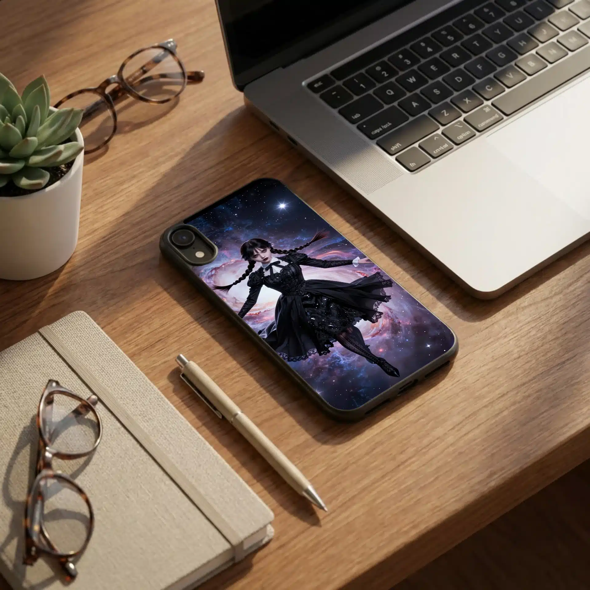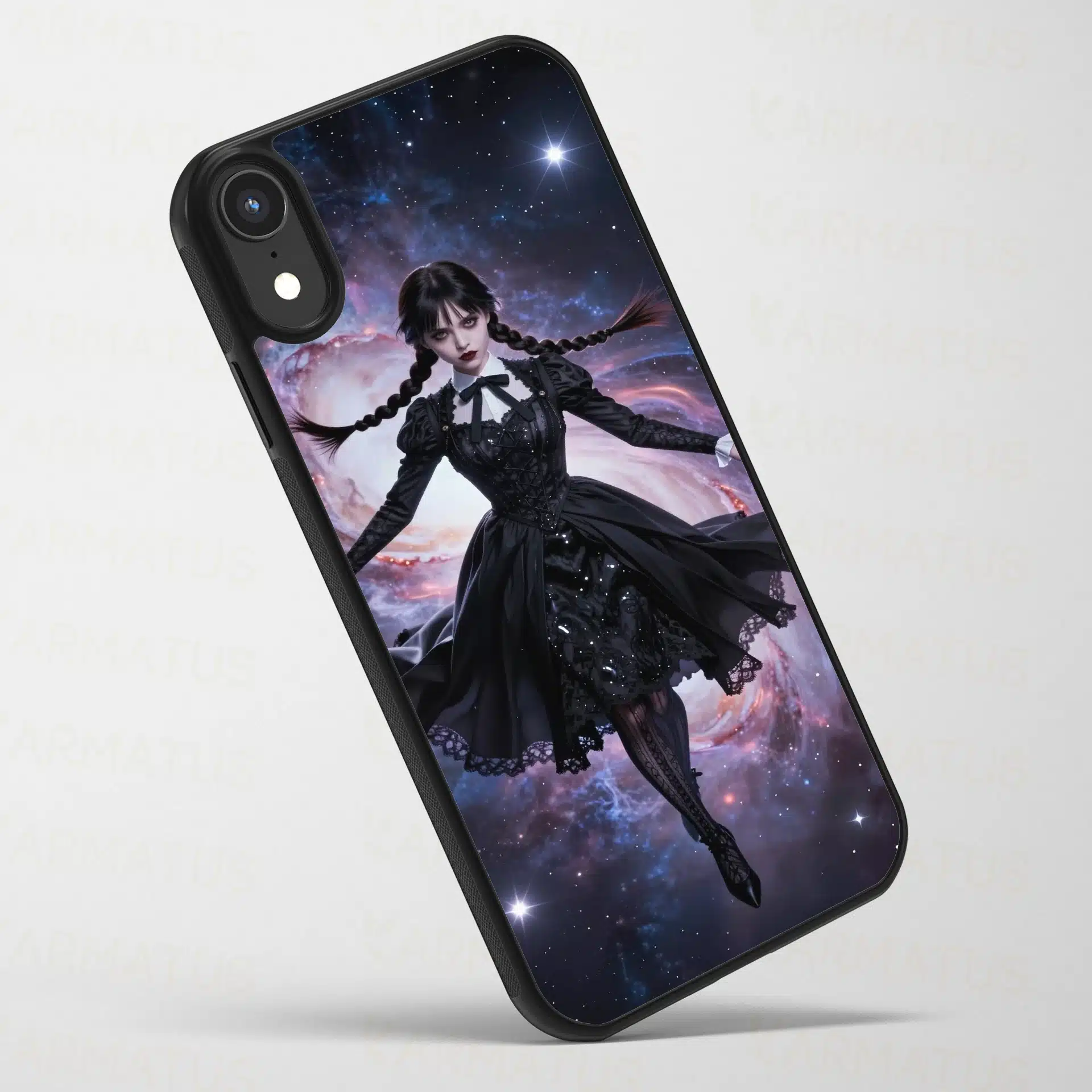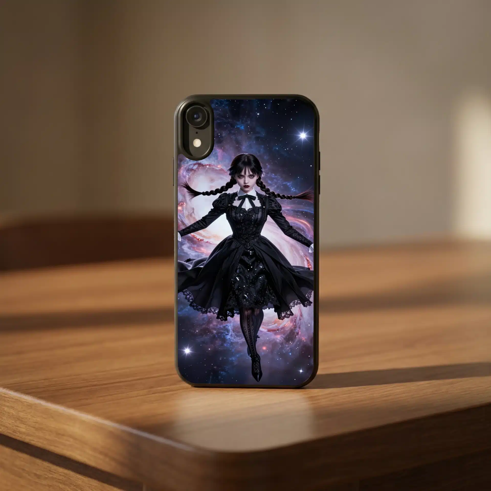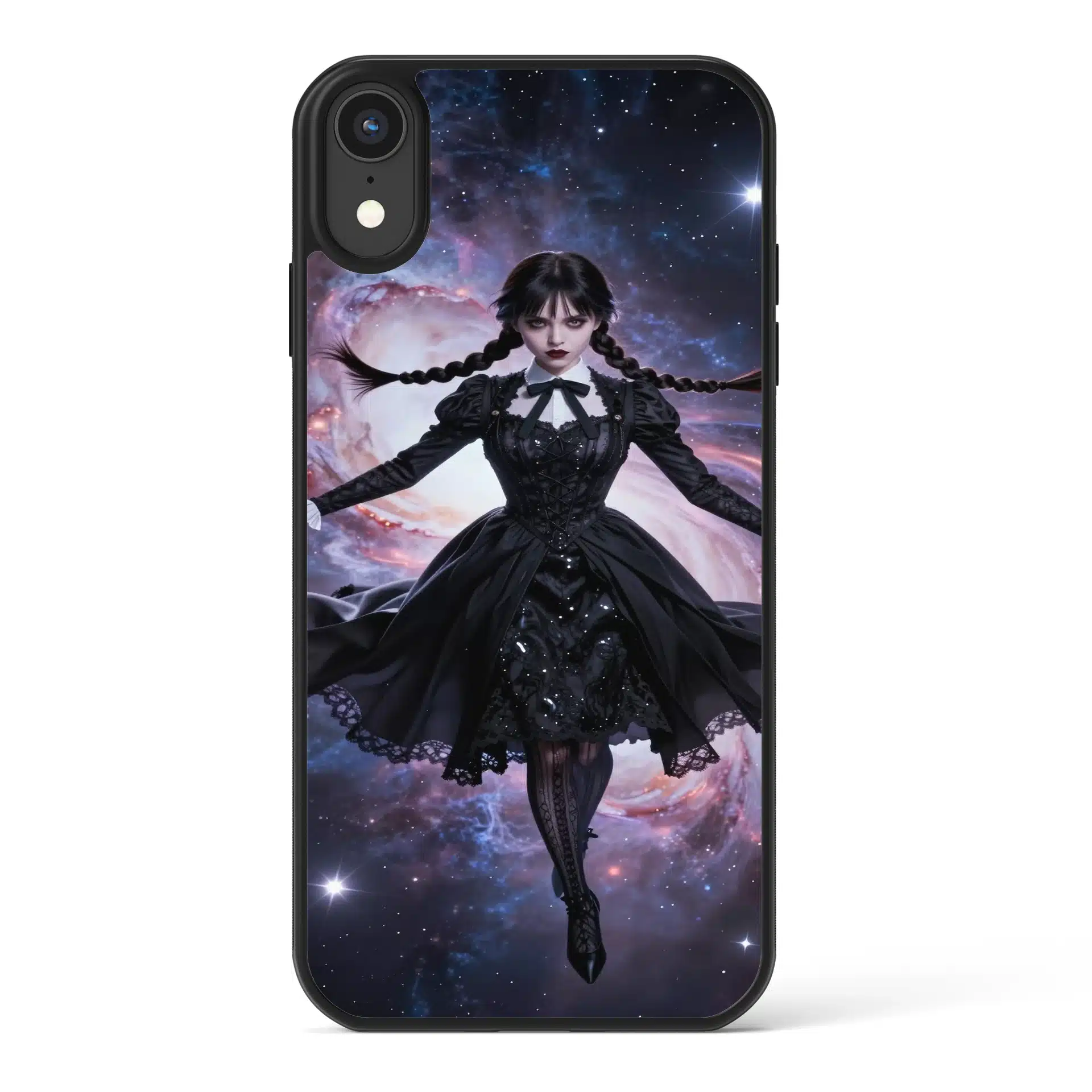 والپیپر انیمهای خیرهکننده از ونزدی آدامز که در فضای بیکران شناور است. این اثر با ترکیب جذابیت گوتیک و شگفتیهای کیهانی، صحنهای رویایی خلق کرده که برای صفحهنمایش موبایل ایدهآل است.