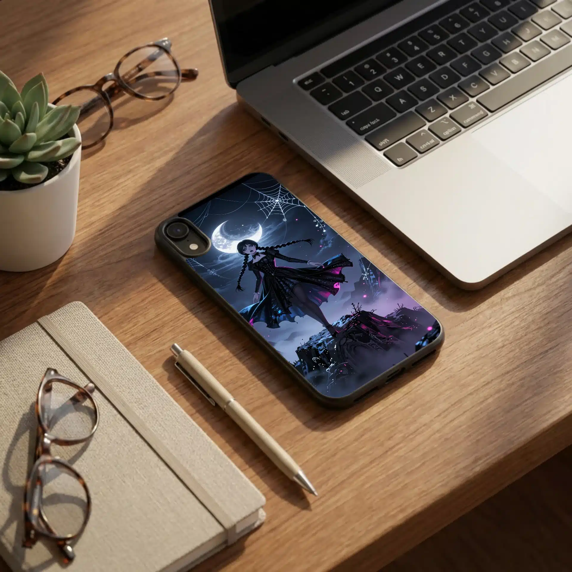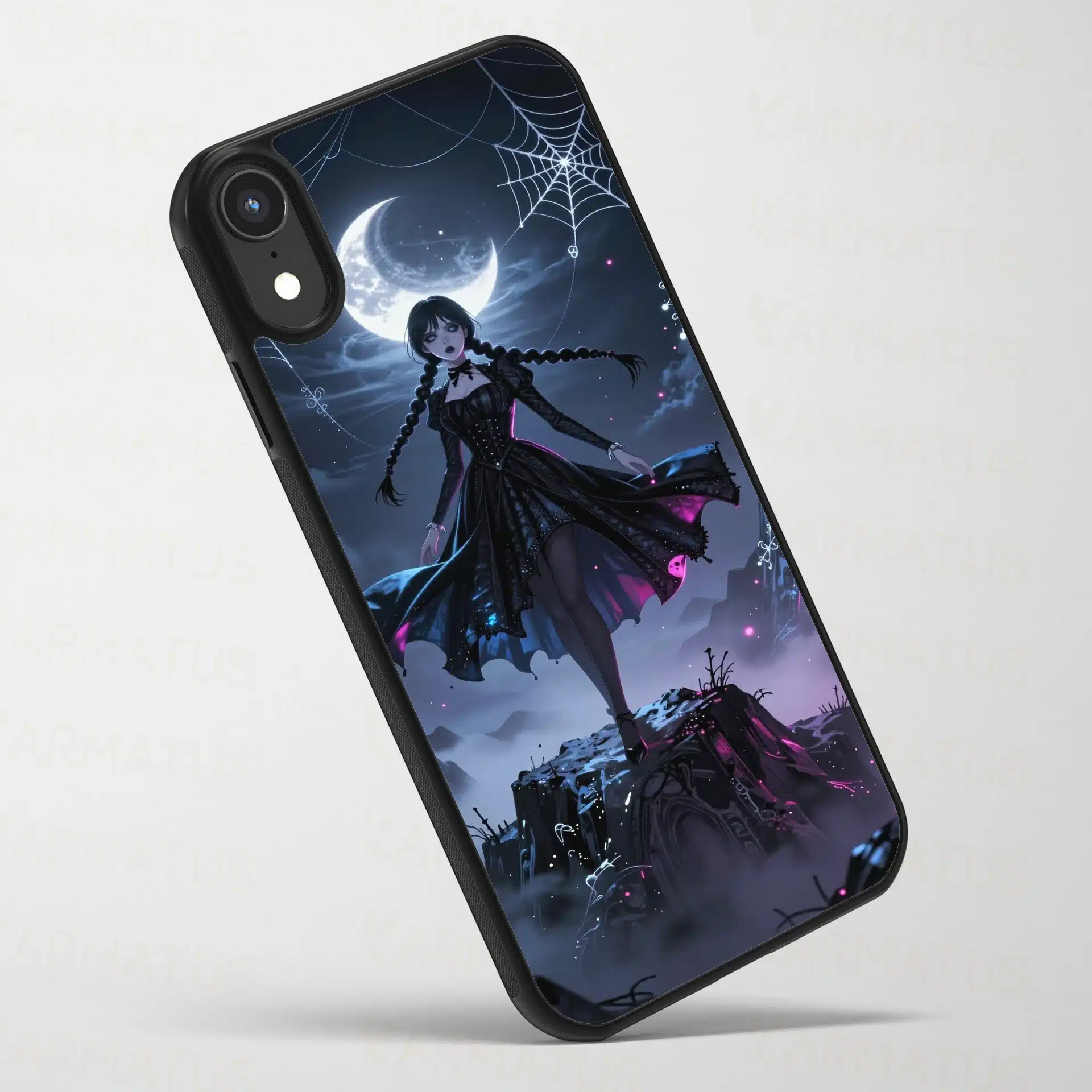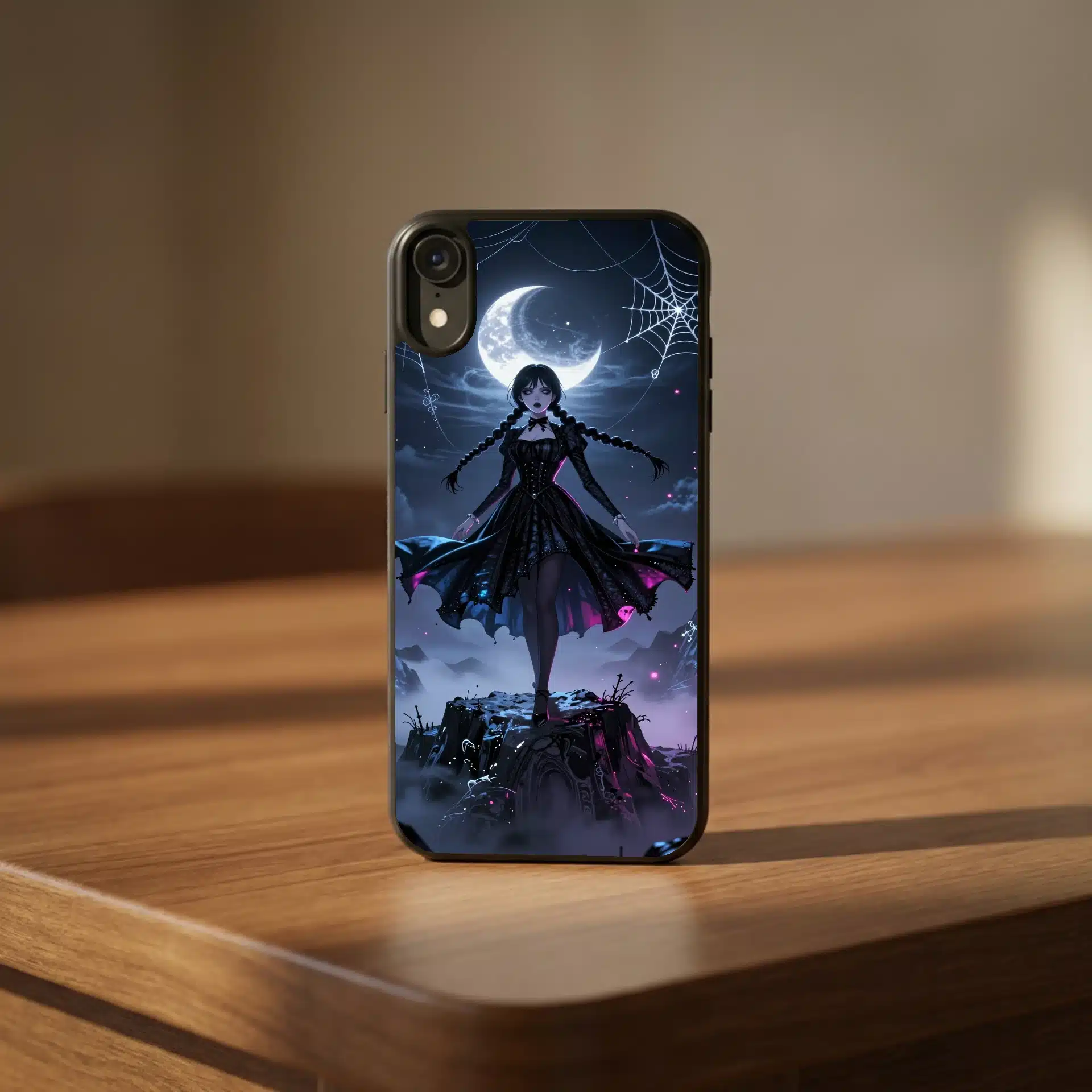 این قاب موبایل با الهام از شخصیت ونزدی آدامز طراحی شده است. صحنهای خیرهکننده از ونزدی را نشان میدهد که بر فراز قلهای مهآلود در نیمهشب ایستاده است، با لباس سیاه نمادینش که در باد یخزده به نمایش درآمده است.