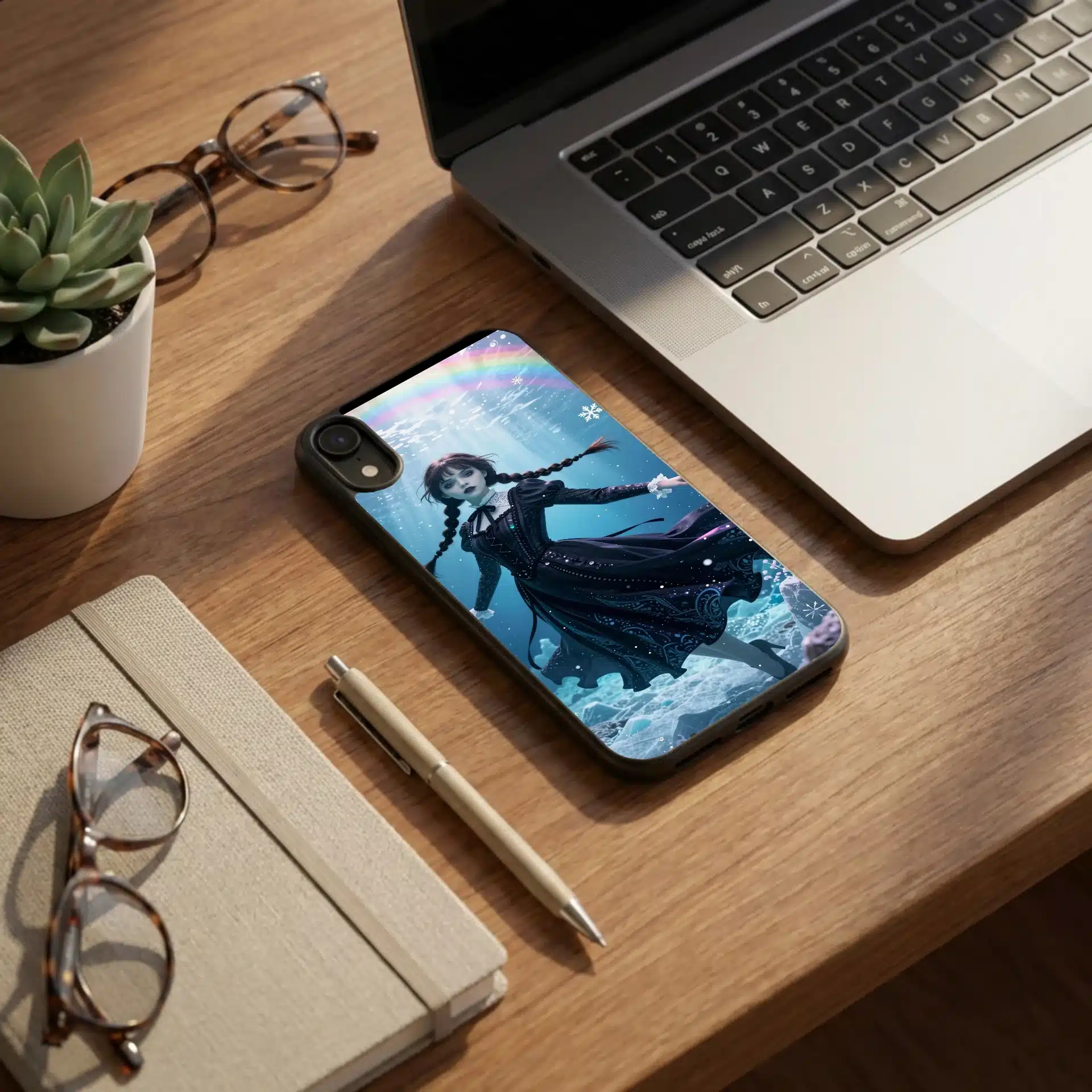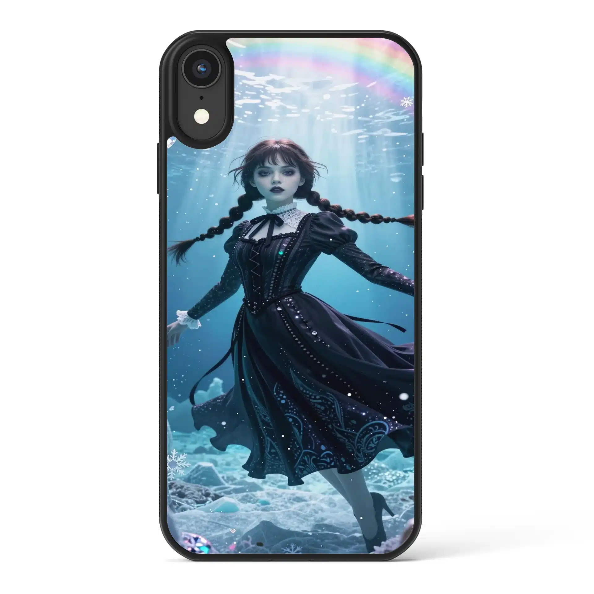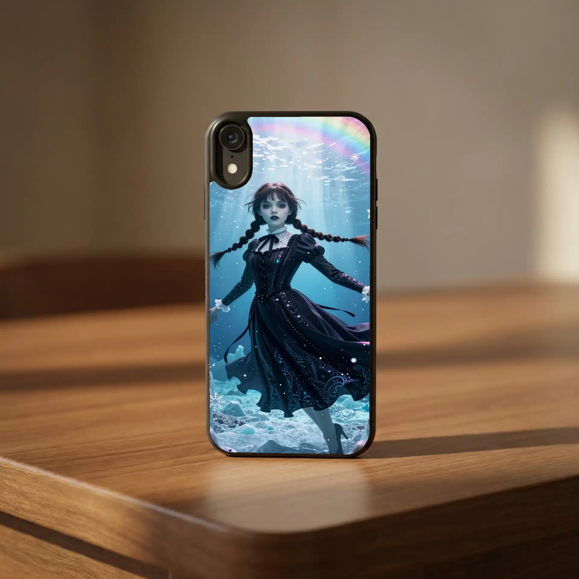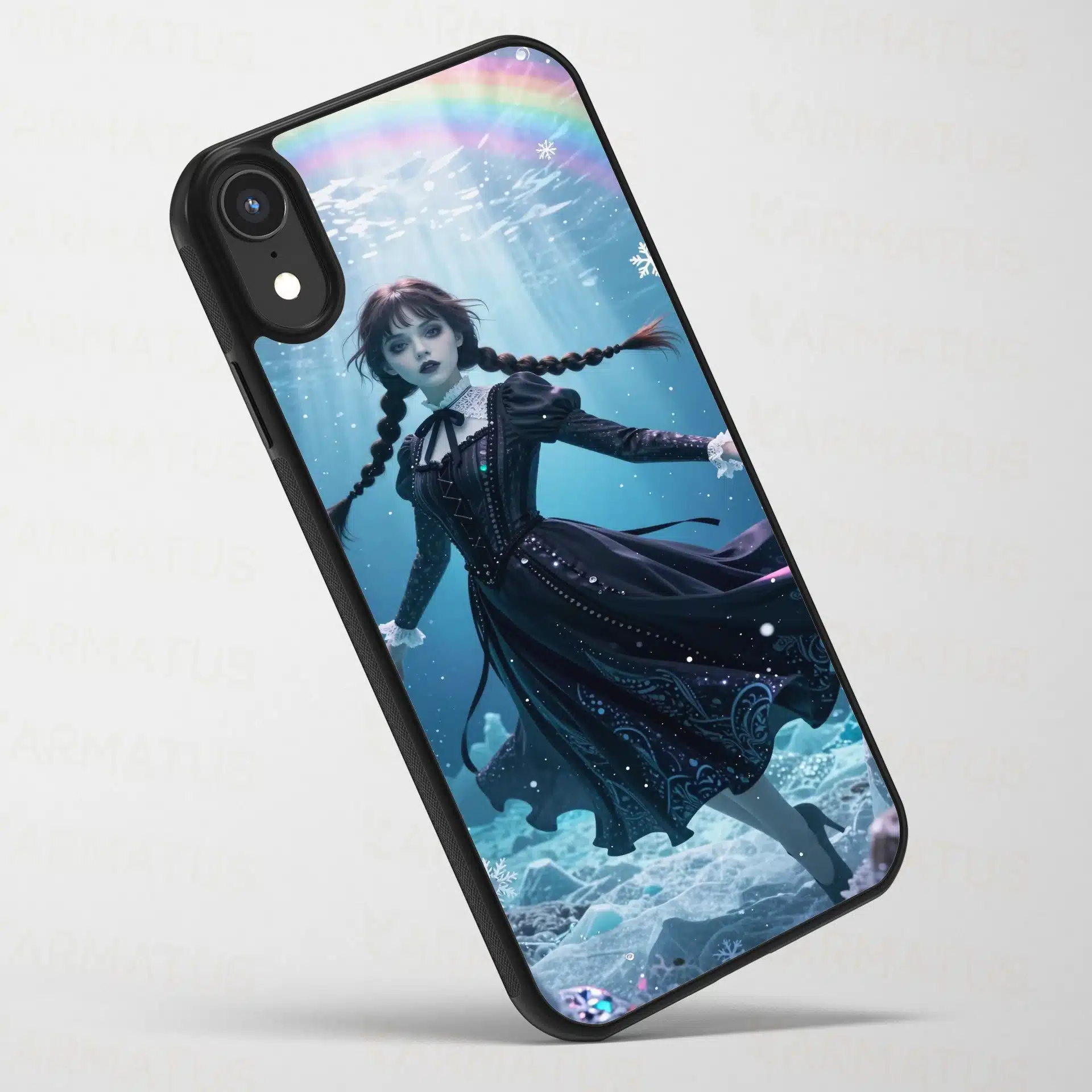 والپیپر انیمهای خیرهکننده از ونزدی آدامز در یک صحنه زیرآبی قطبی، با لباس سیاه نمادینش که با هایلایتهای نئون فیروزهای و صورتی به آرامی در حرکت است. این اثر ترکیبی از جذابیت گوتیک و زیبایی فراواقعی را برای یک والپیپر ویروسی ارائه میدهد.