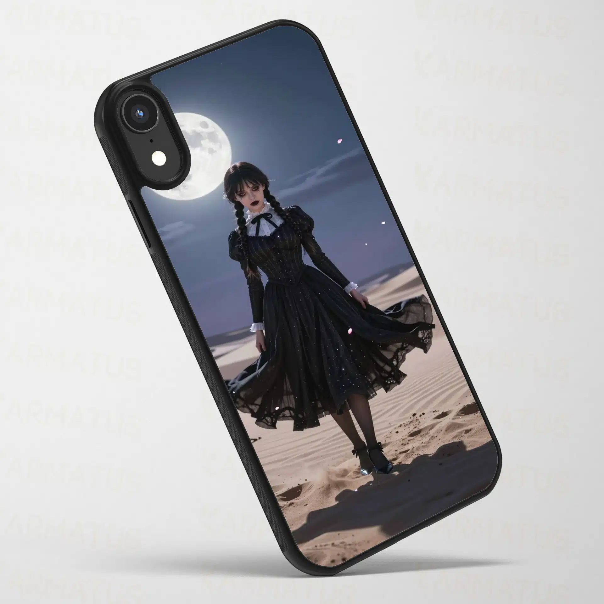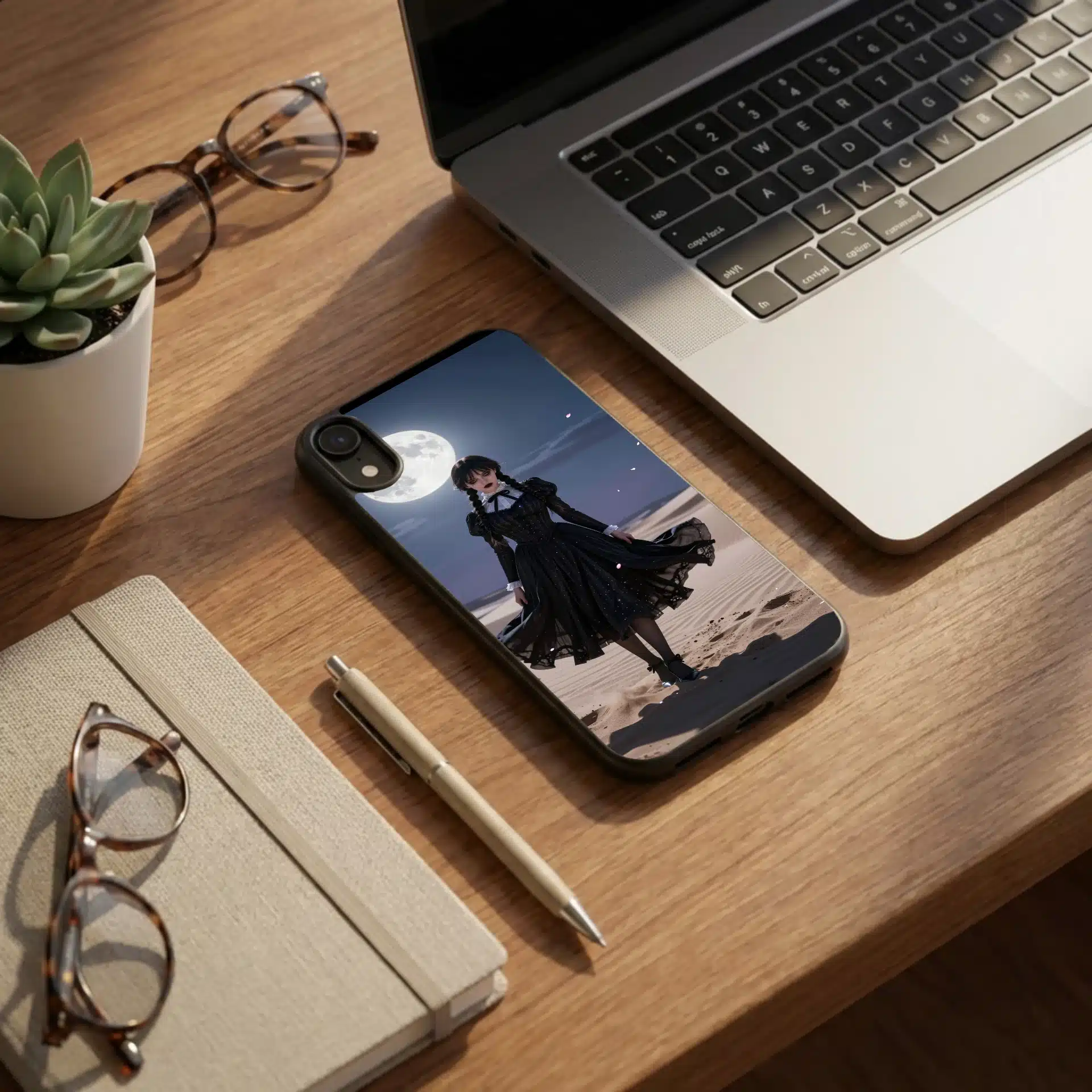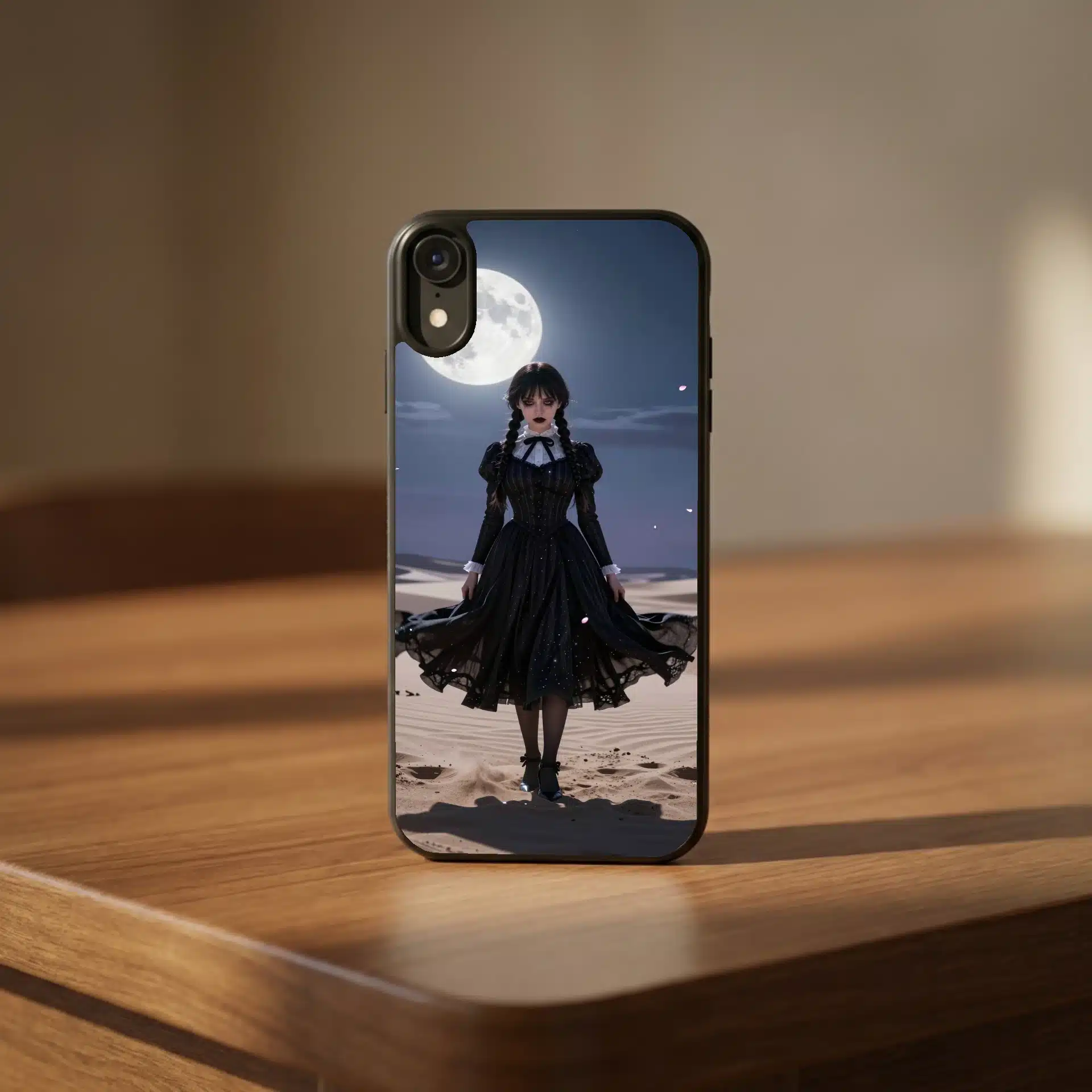 طرحی با جزئیات فوقالعاده در رزولوشن 8K و کیفیتی مشابه Unreal Engine 5، شامل افکتهای ذرهای جوی و نمای سینمایی واید که حال و هوای گوتیک و بیان بیاحساس نمادین او را به تصویر میکشد. افکتهای نوری اتری و زیبا این تصویر را به انتخابی ایدهآل برای والپیپر موبایل تبدیل کردهاست.