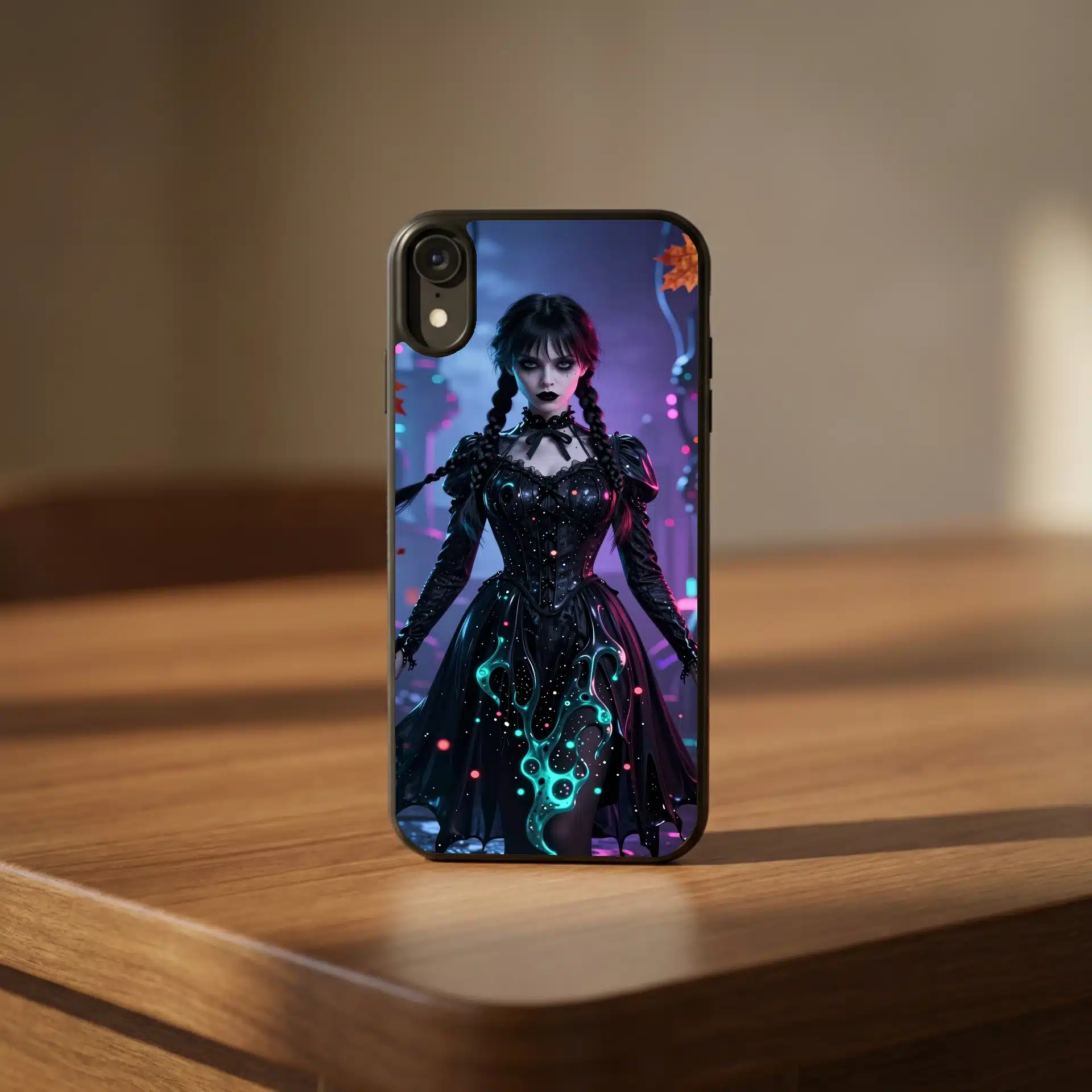 والپیپر انیمهای استثنایی از ونزدی آدامز در یک محیط شهری نئونی و پرجنبوجوش، با لباس سیاه نمادینش که به شکل ارگانیک و مایع درآمده و به ذرات درخشان فیروزهای و مرجانی تبدیل میشود. این اثر با نورپردازی سینمایی، چهرهی رنگپریده و بافتهای تیرهی موهایش را برجسته میکند و ترکیبی از فضای گوتیک تاریک و زیباییشناسی سایبرپانک را ارائه میدهد.