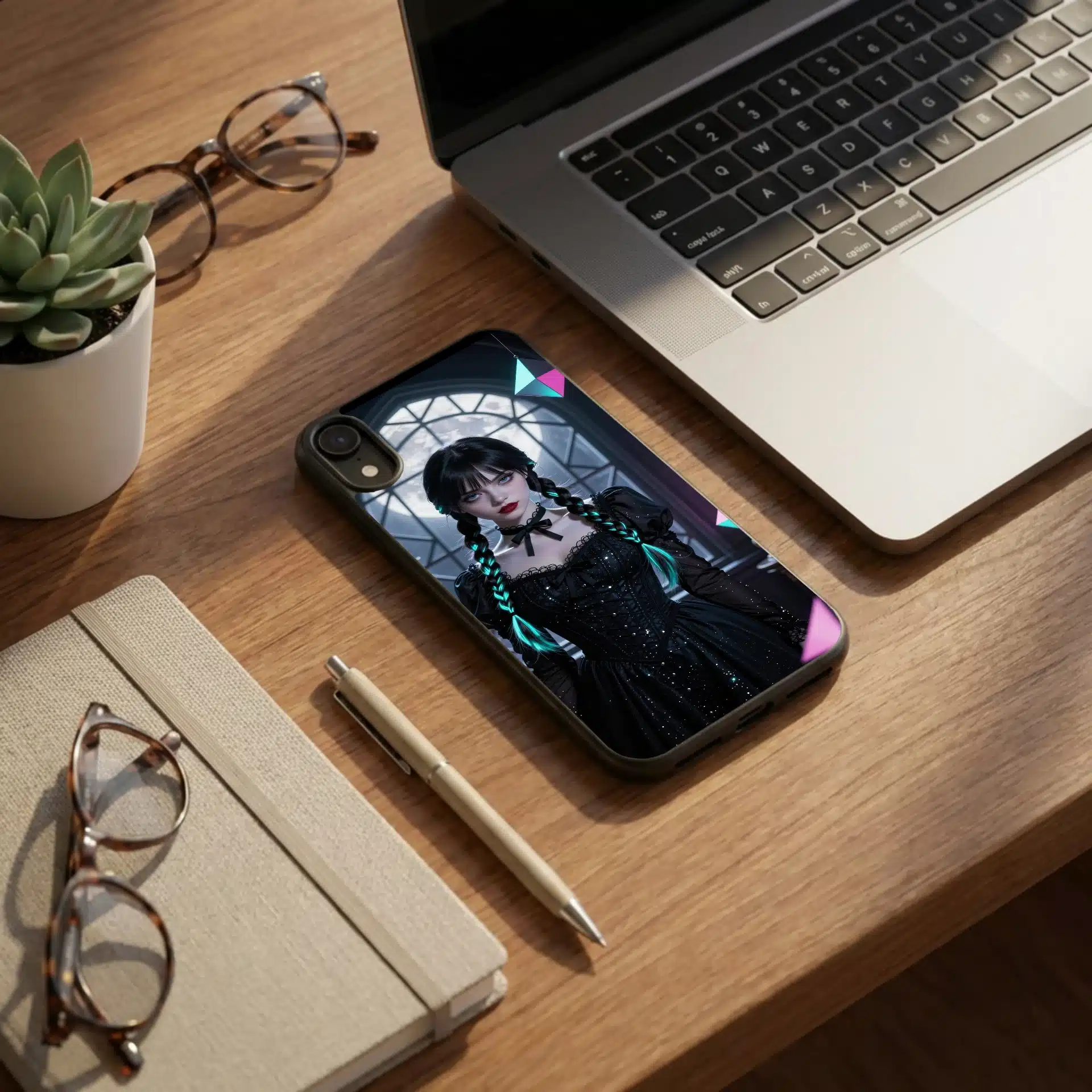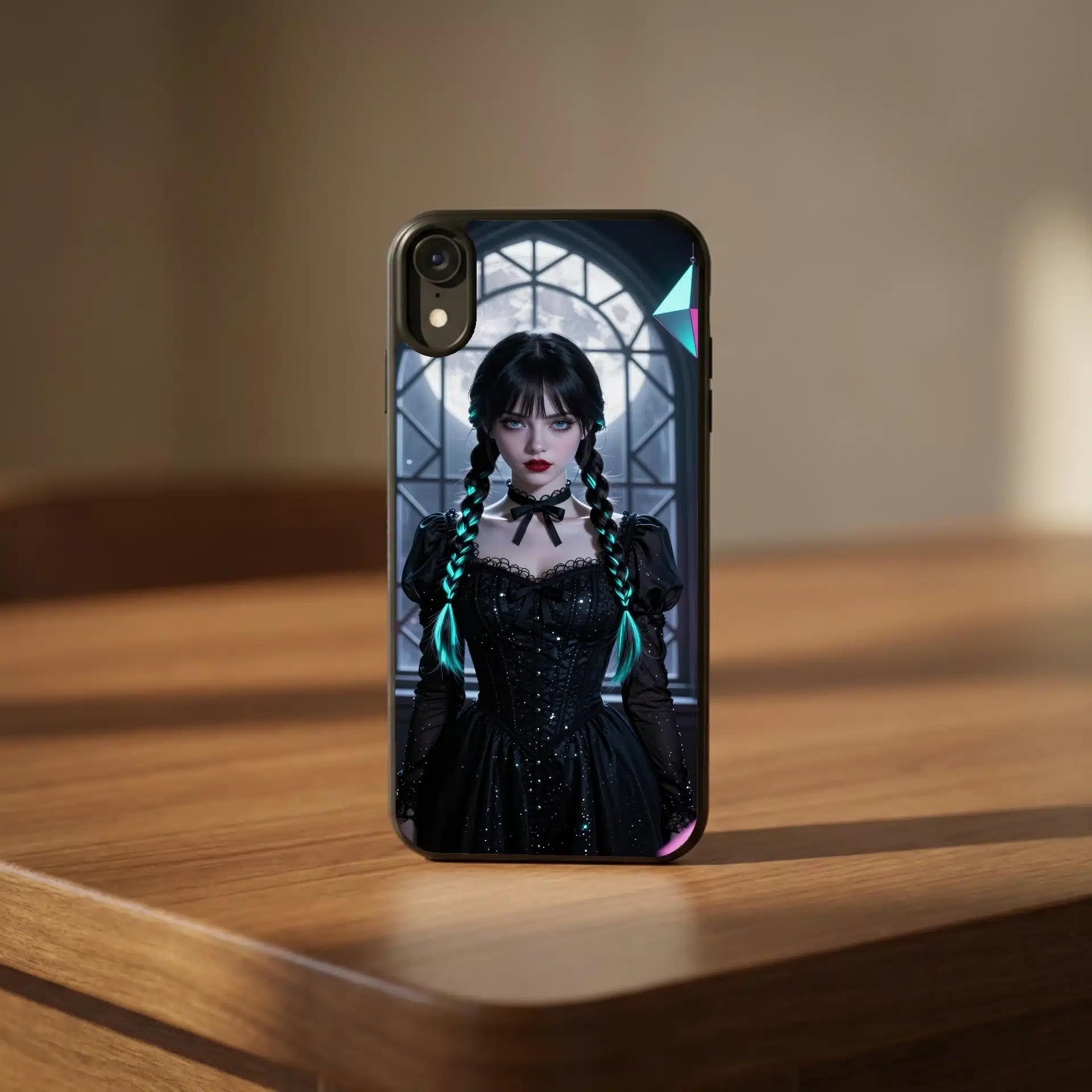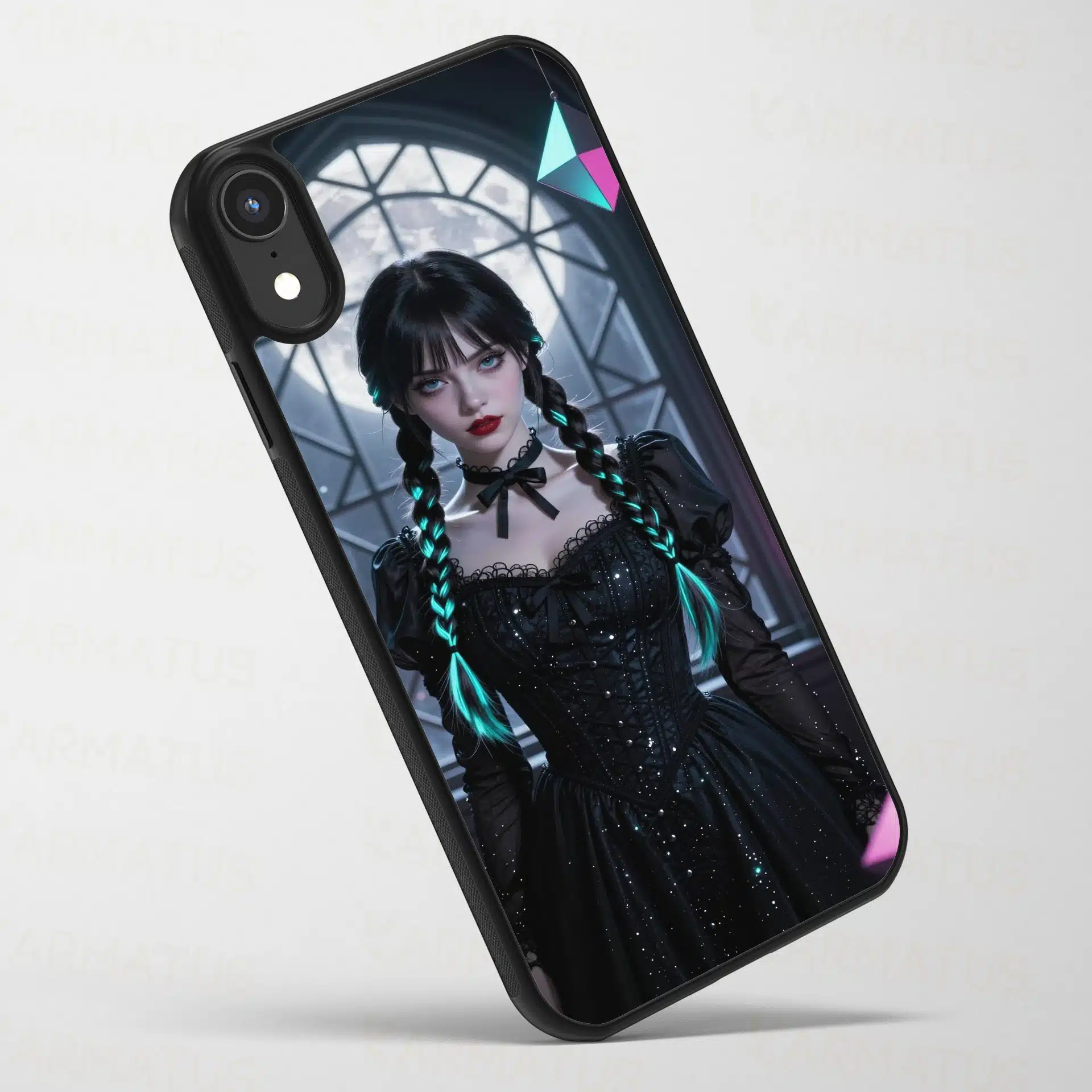 این قاب موبایل با الهام از شخصیت ونزدی آدامز طراحی شده است. صحنهای از ونزدی را در یک فضای گوتیک و دنج به تصویر میکشد که با نور ماه نقرهای و هایلایتهای نئون فیروزهای در موهایش جلوهای خیرهکننده دارد.