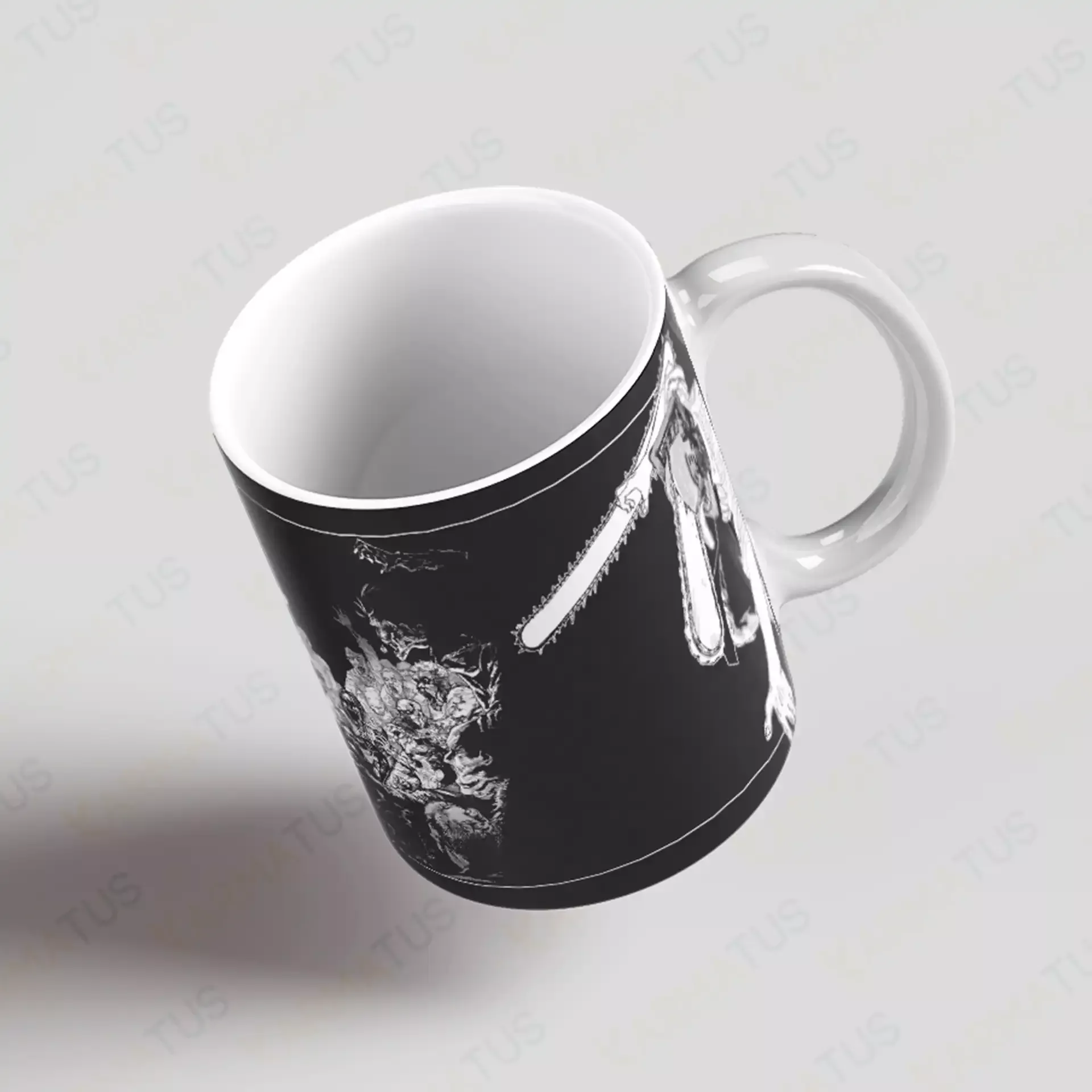 2. ماگ‌های طراحی شده با تصاویر دنیای "مرد اره‌ای": صبح خود را با یک فنجان قهوه در ماگ‌های منحصر به فرد "کارماتوس" شروع کنید.