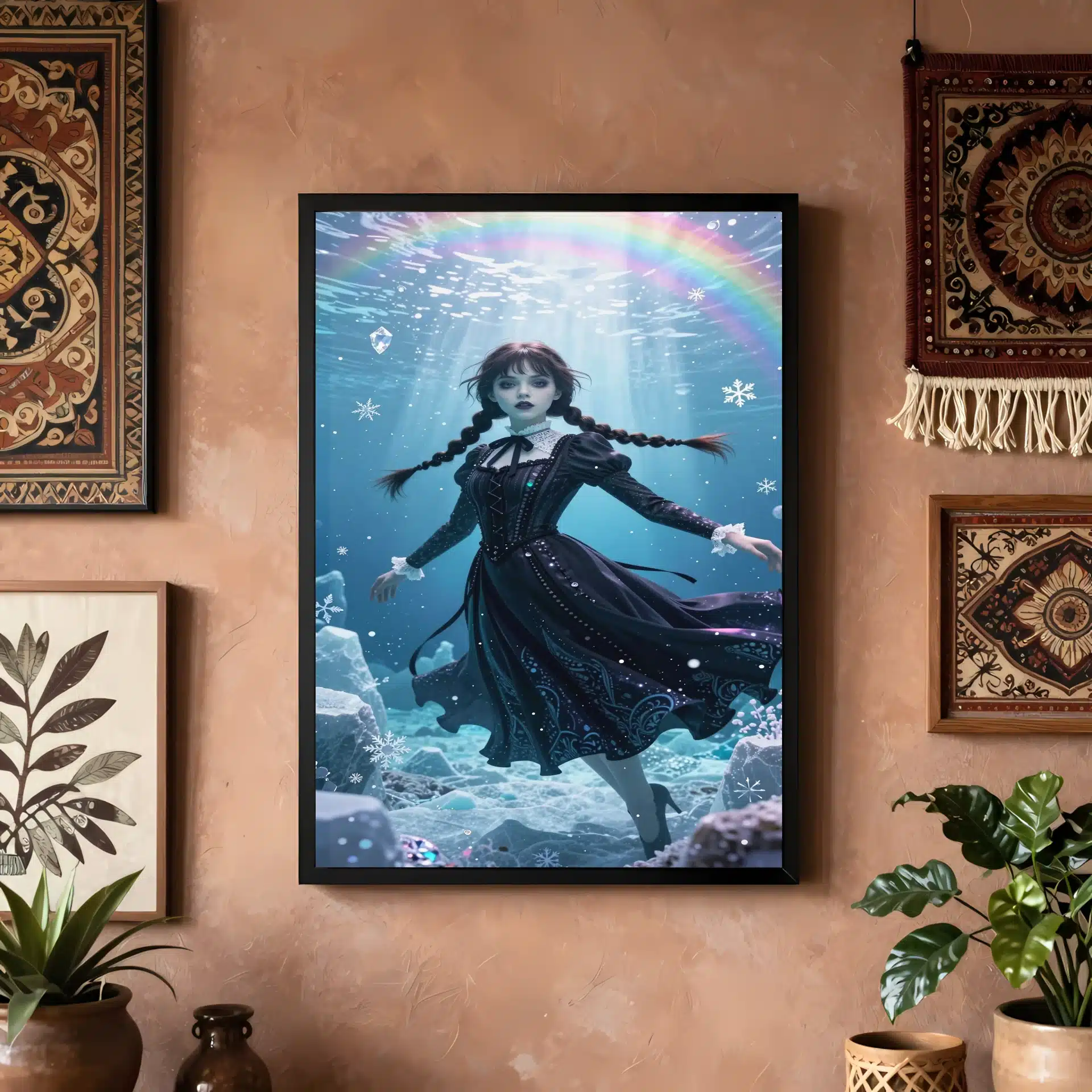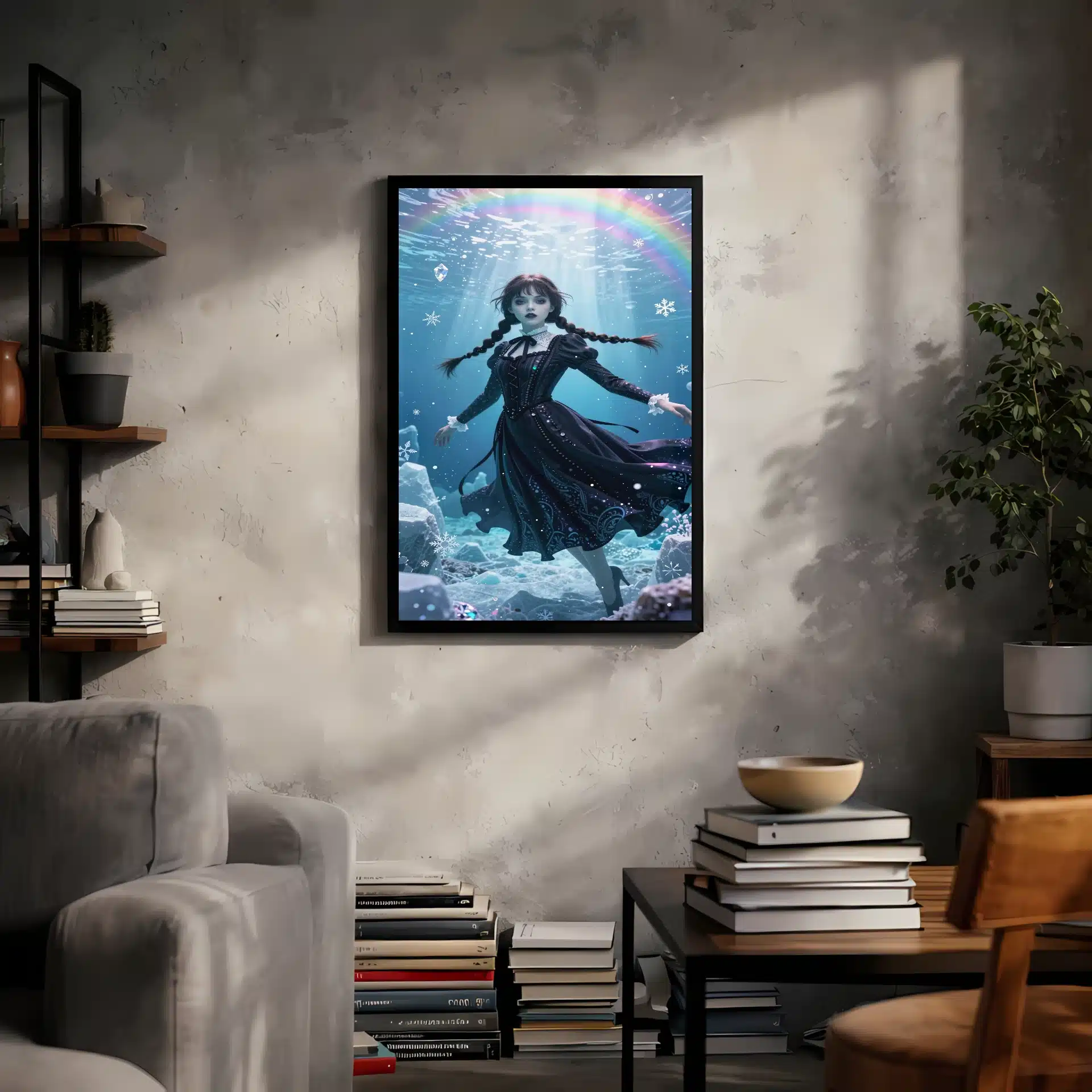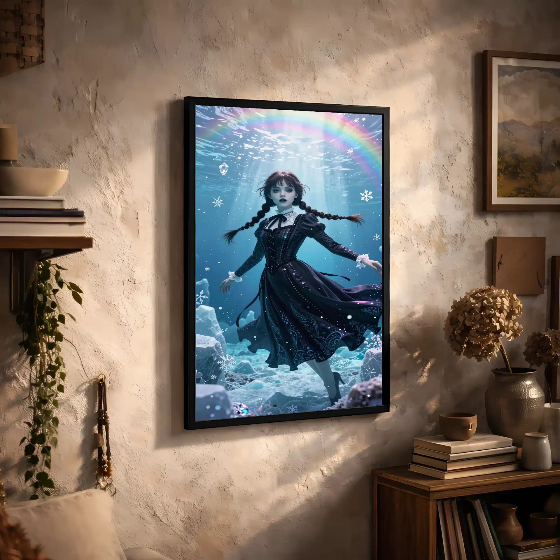 این قاب عکس از ونزدی آدامز در یک صحنه زیرآبی قطبی طراحی شده است. با ترکیب زیبایی از سبک گوتیک و فضایی رویایی، این اثر هنری انیمهای توجه هر بینندهای را جلب میکند.