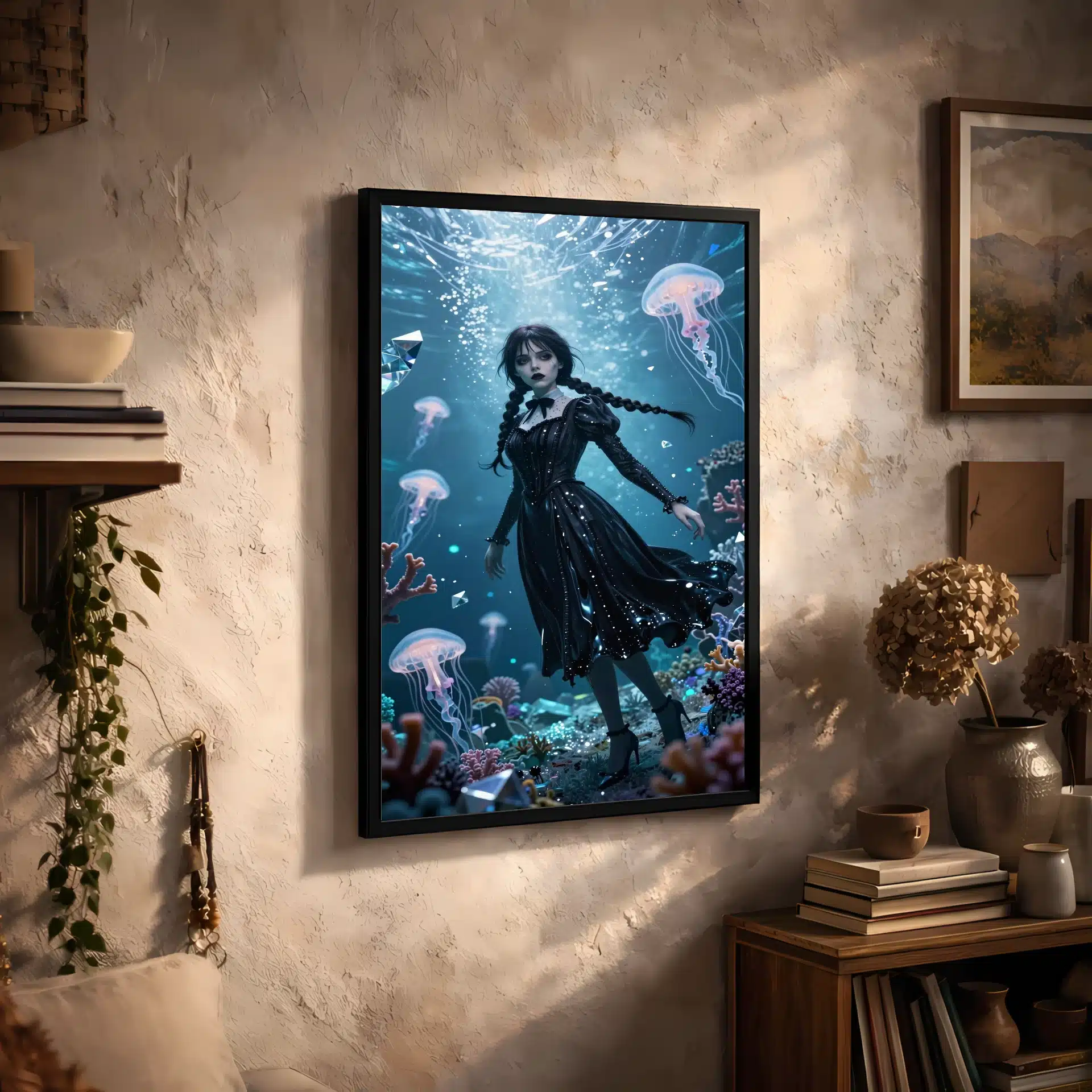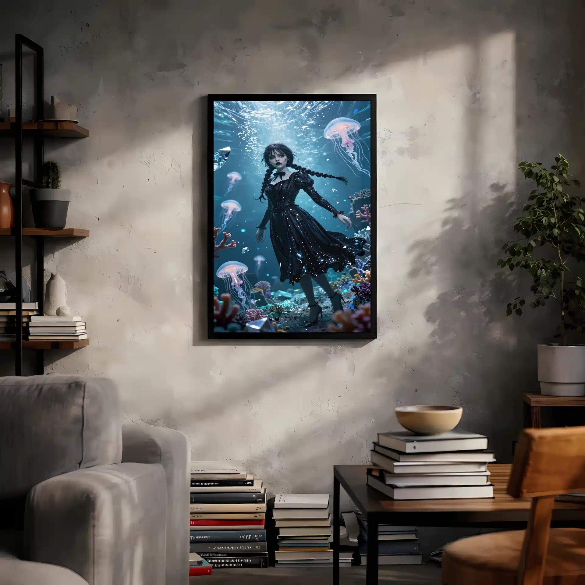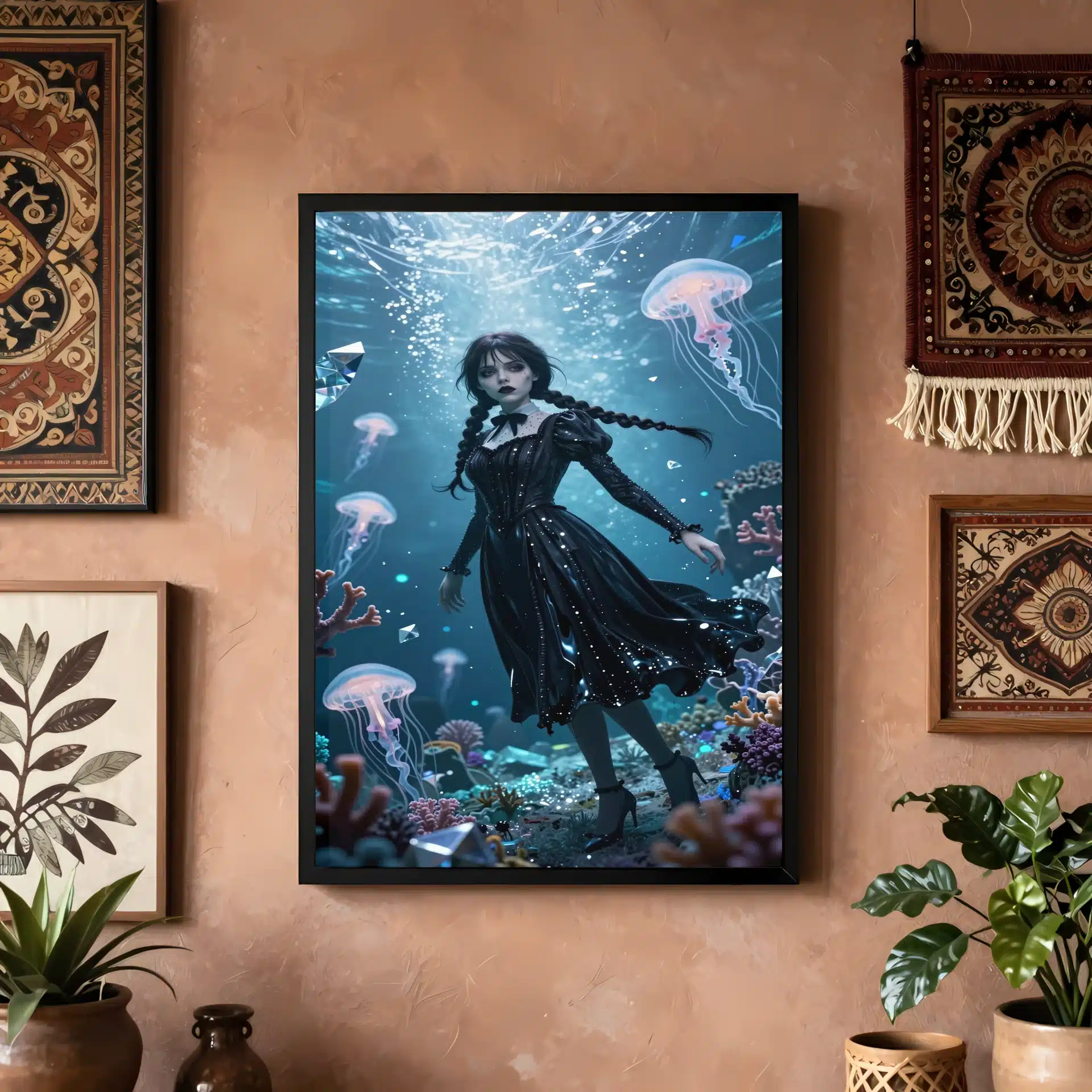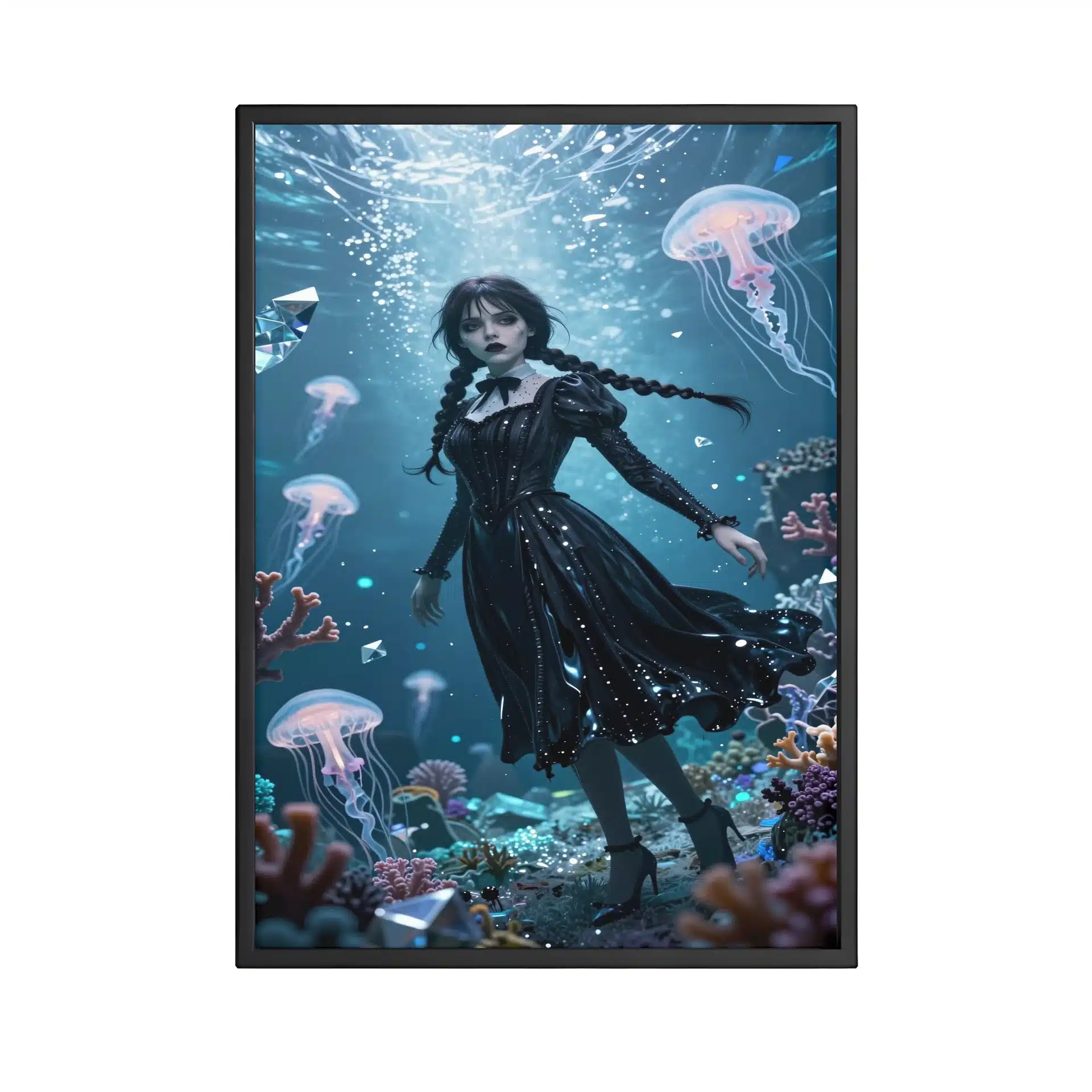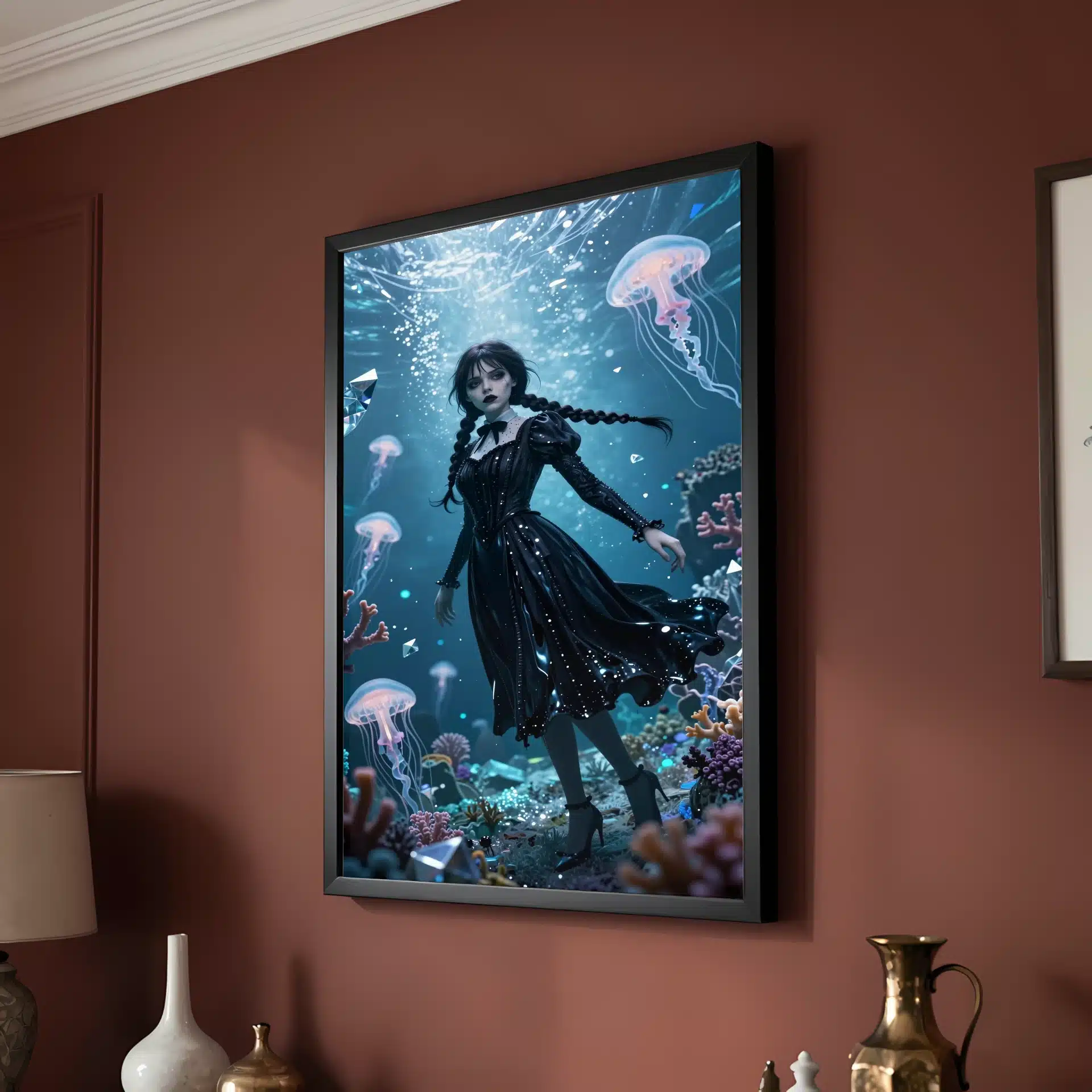 این قاب عکس با الهام از شخصیت محبوب ‘ونزدی آدامز’ طراحی شده است. صحنهای خیرهکننده از اعماق اقیانوس منجمد شمالی که در آن ونزدی با لباس سیاه نمادینش، مانند مرکبی سیال در میان جریانهای فیروزهای و نقرهای به نظر میرسد.