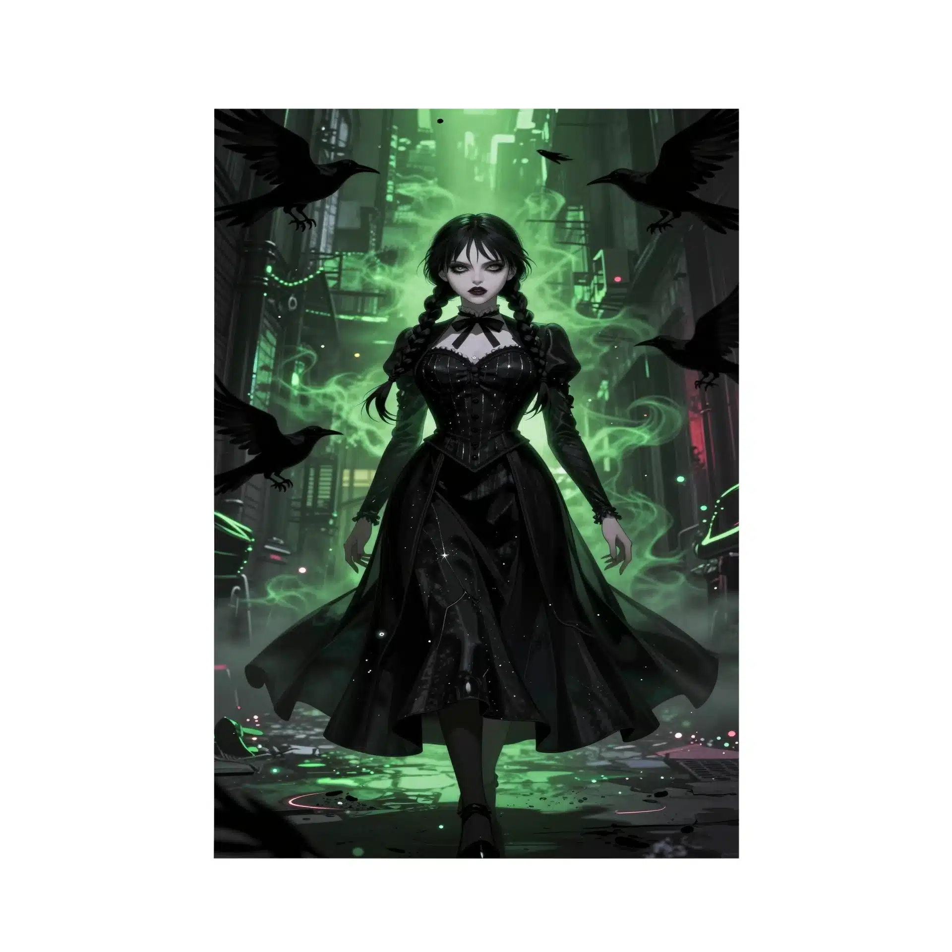 پوستر ‘ونزدی’ با الهام از شخصیت وونزدی آدامز، در یک طراحی انیمهای خیرهکننده ارائه شده است. این اثر هنری با ترکیب جذابیت گوتیک و زیبایی مدرن، صحنهای تاریک و رمزآلود از یک کوچه شهری را به تصویر میکشد.