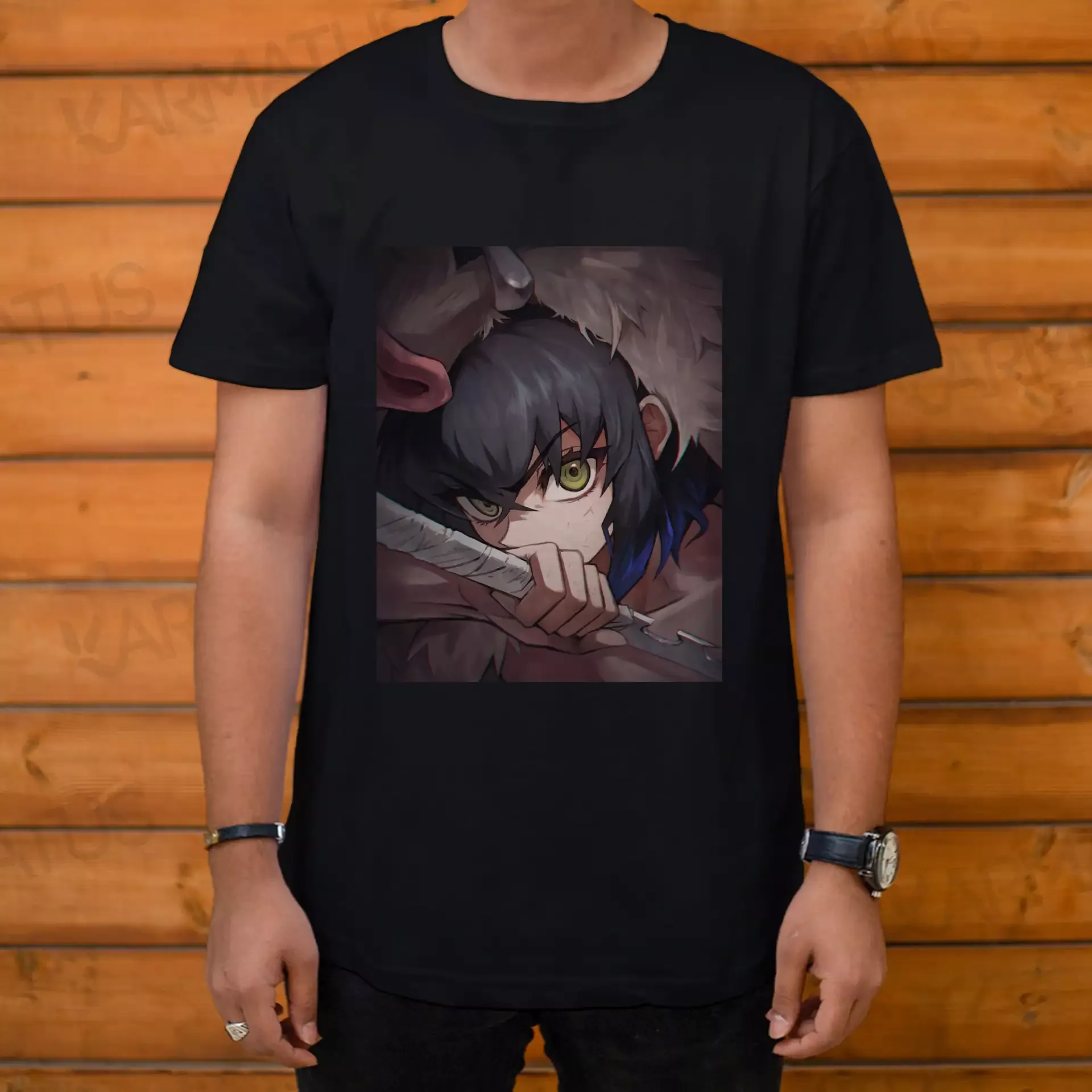 جنس تیشرت مشکی طرح انیمه شیطان کش Demon Slayer :