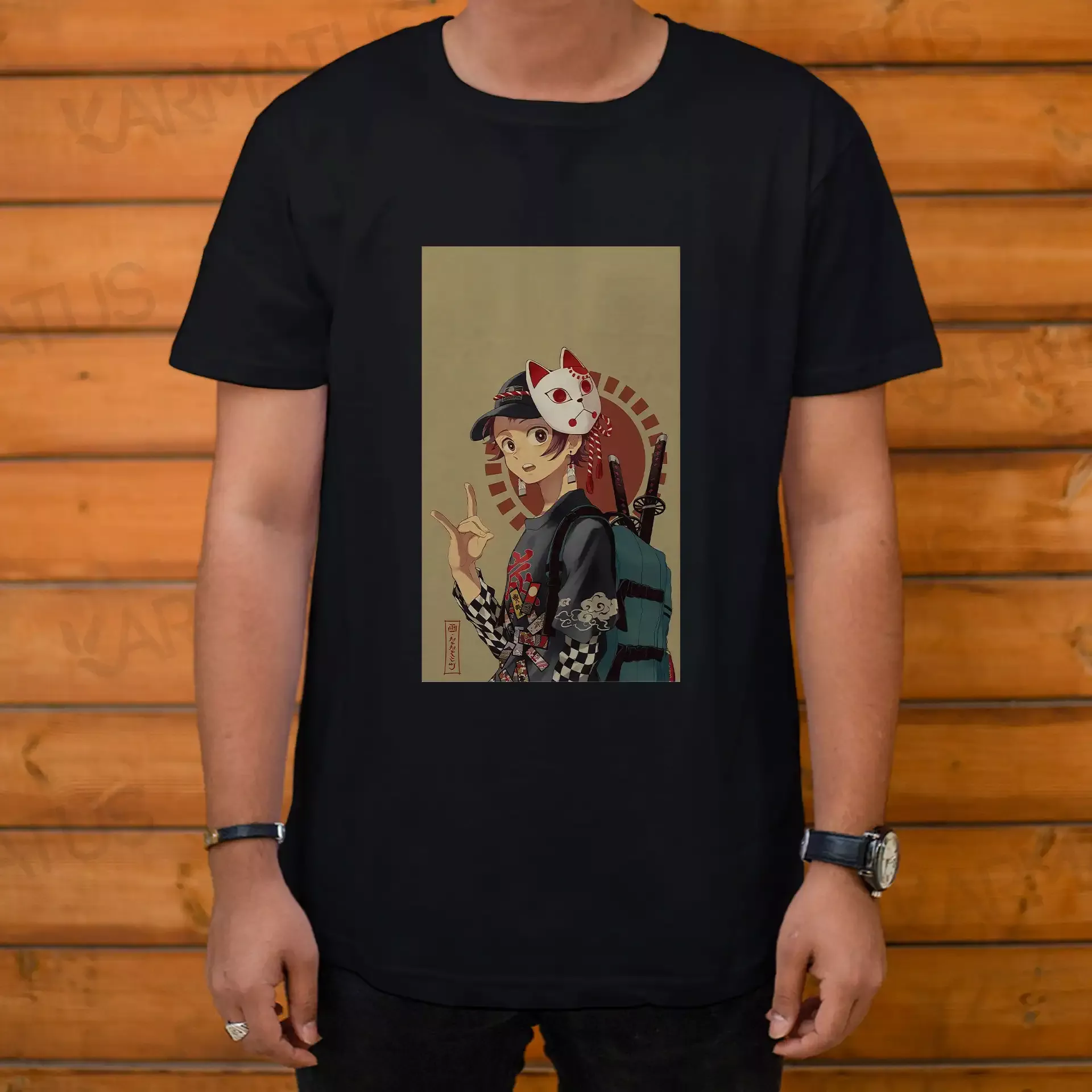 جنس تیشرت مشکی طرح انیمه شیطان کش Demon Slayer :
