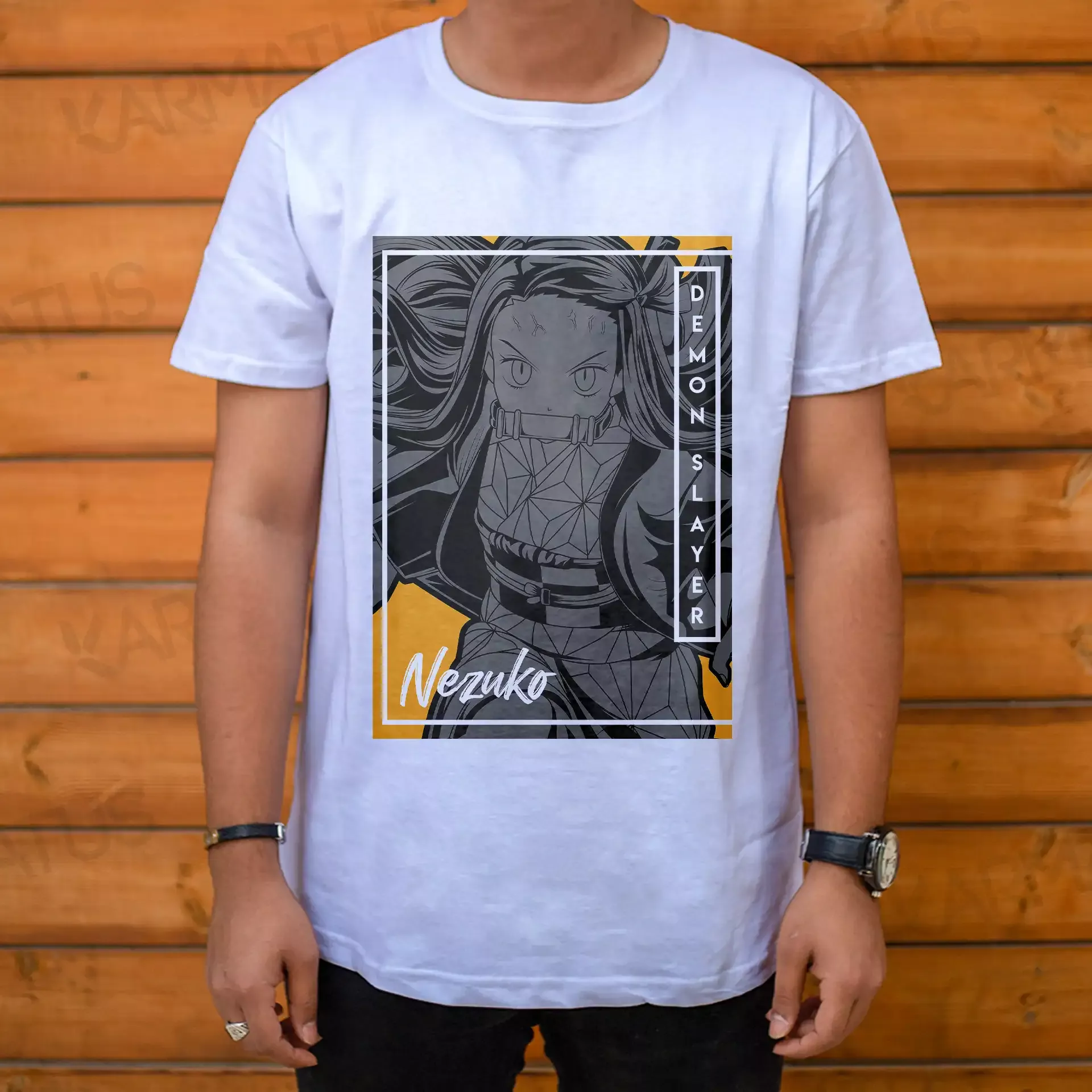 1. تیشرت‌های شیطان کش: تیشرت‌هایی با طراحی‌های بی‌نظیر از شخصیت‌های اصلی انیمه مانند تانجیرو، زنیتسو، و نازکو، که شما می‌توانید آنها را در موقعیت‌های مختلف بپوشید و عشق خود به این انیمه را نشان دهید.
