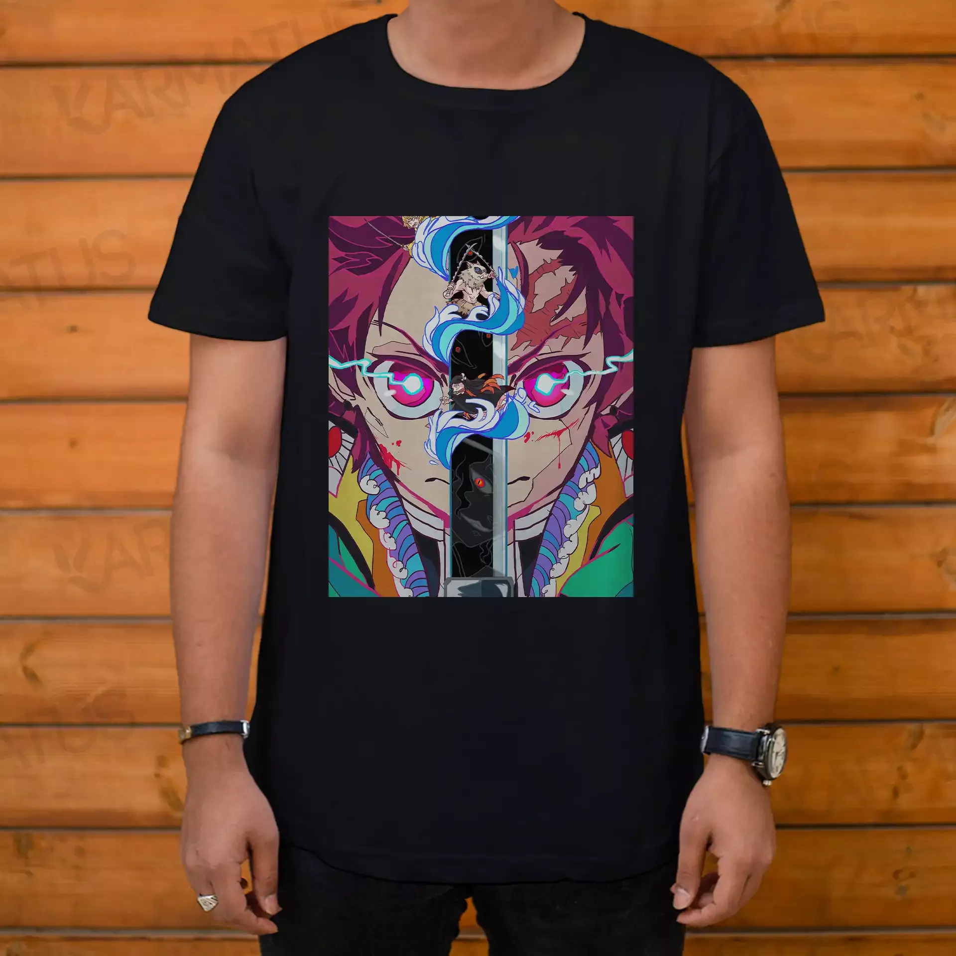1. تیشرت‌های شیطان کش: تیشرت‌هایی با طراحی‌های بی‌نظیر از شخصیت‌های اصلی انیمه مانند تانجیرو، زنیتسو، و نازکو، که شما می‌توانید آنها را در موقعیت‌های مختلف بپوشید و عشق خود به این انیمه را نشان دهید.