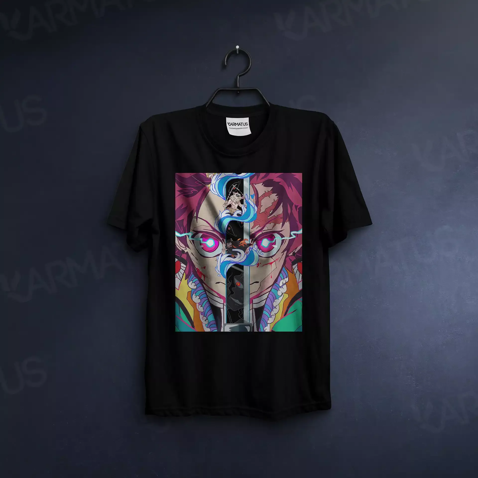 • در کارماتوس، کنتراست رنگ‌ها مهم است؛ طرح شما متناسب با رنگ تیشرت ادیت می‌شود تا بهترین نمایش را داشته باشد.
